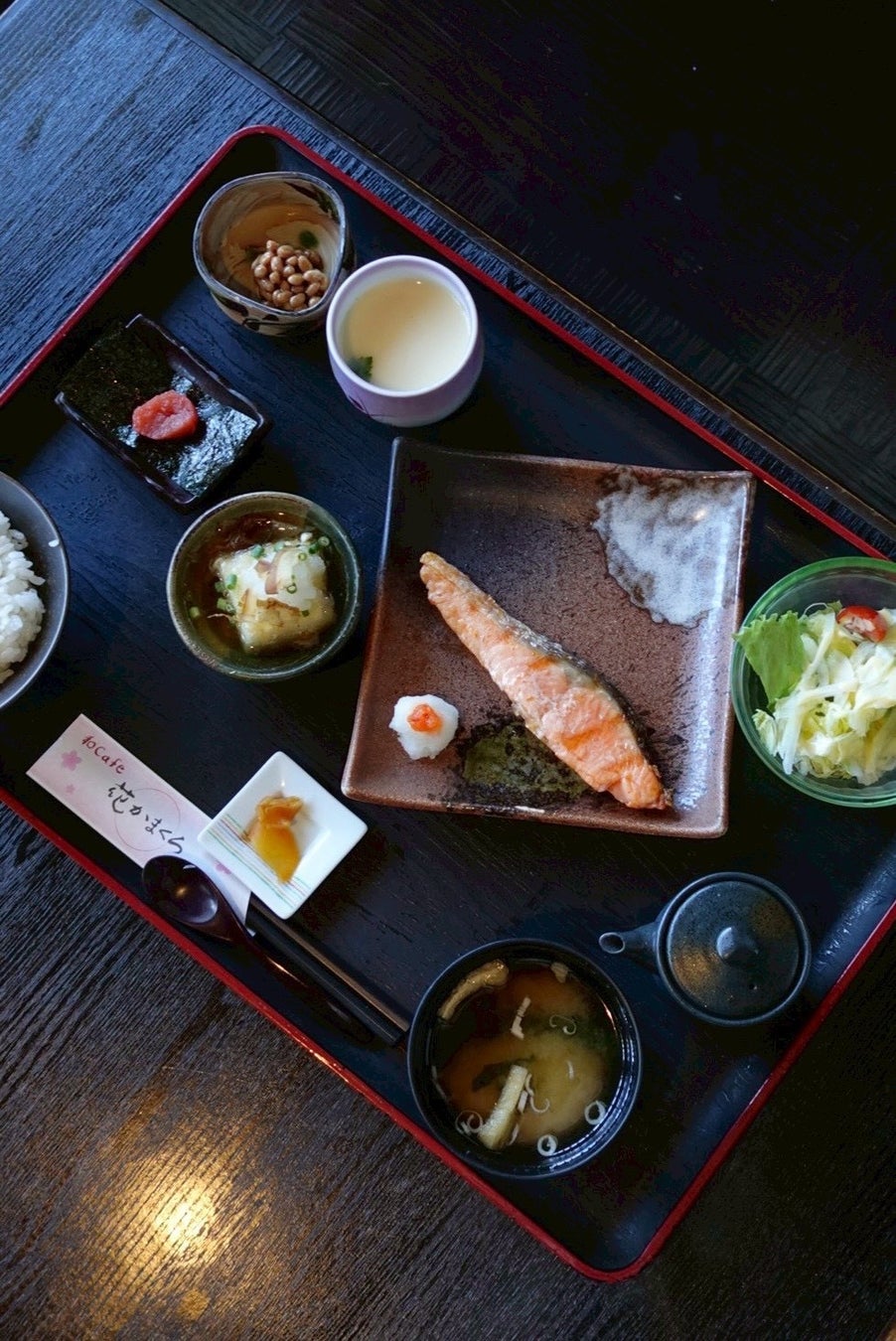 朝の定番、「焼きシャケ」を中心とした、バランスよく朝から召し上がっていただけるモーニングセットです。セット内容は、栄養バランス抜群。そして、ドリンクまでセットでついてきます。