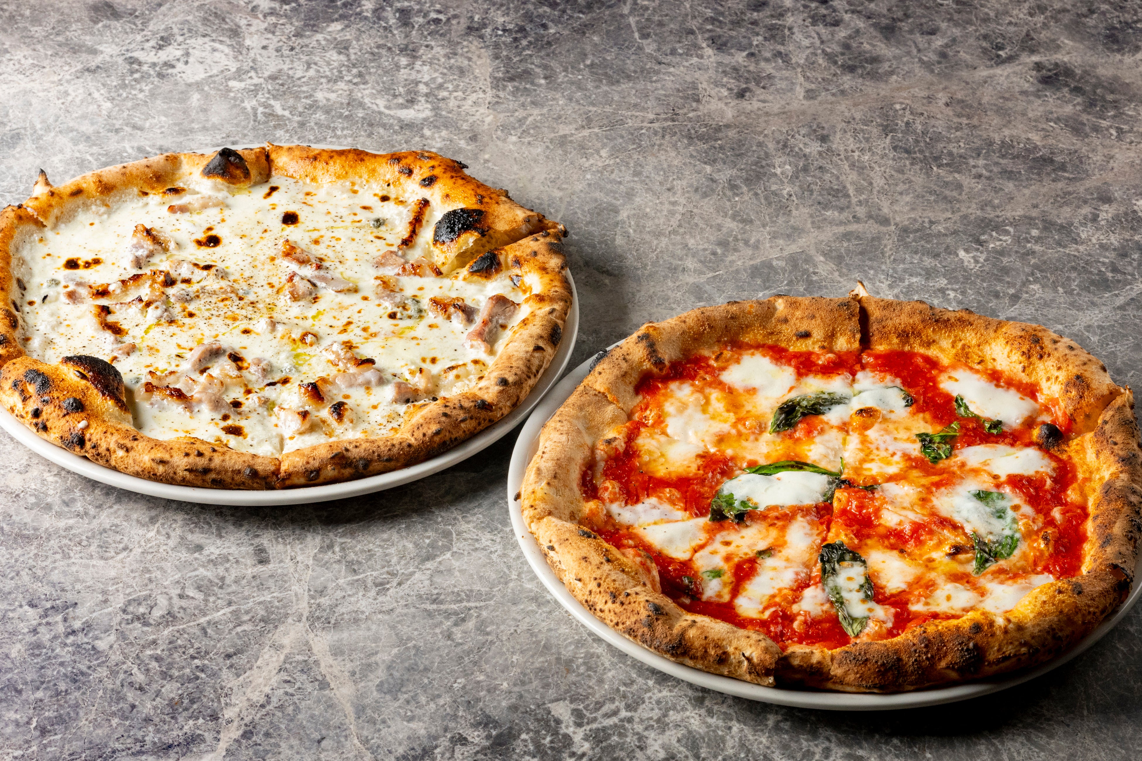 MORETHANでは、ここでつくられたフレッシュチーズを使用し、イタリアで100年以上の歴史を持つアクント・マリオ社製の薪窯で焼き上げるピザを提供。ピッツァは、「UBUYAMA PLACE」で人気のマルゲリータに加え、「THE KNOT FUKUOKA Tenjin」オリジナルピッツァも展開