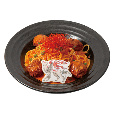 筆しらべ【輝玉】をイメージし。肉団子でその力を表現したトマトクリームパスタ。
