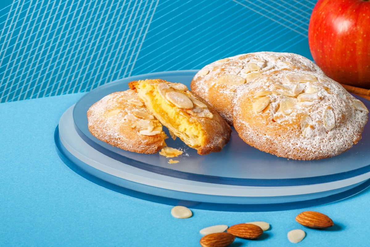 紅玉のピューレと、アップルダイスにダマンドクリームを合わせたフィリングを、パイに重ねて焼き上げました。じっくり2度焼きすることで、外は香ばしく、中はアップルダマンドがジューシーに。パイ生地のバターが香る、幾重にも重なる奥行きのある味わいをお楽しみください。