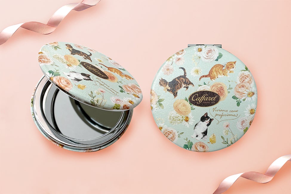カファレル人気のねこイラストがデザインされたミラーをおひとり様1点プレゼント。