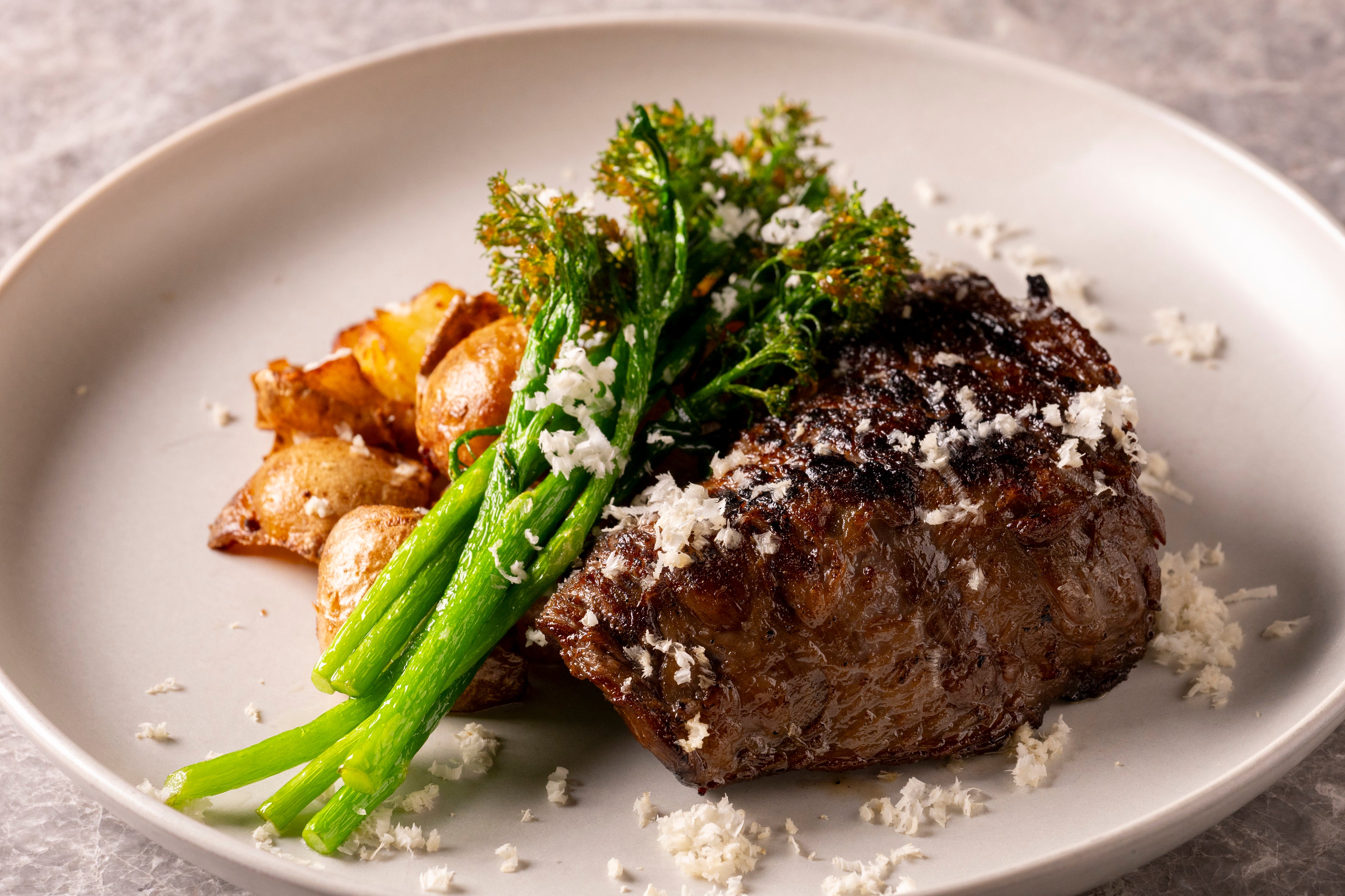 メインには、宮崎県産の都萬牛を使用したステークフリッツを提供しており、赤身と脂のバランスを生かした火入れを行っています。