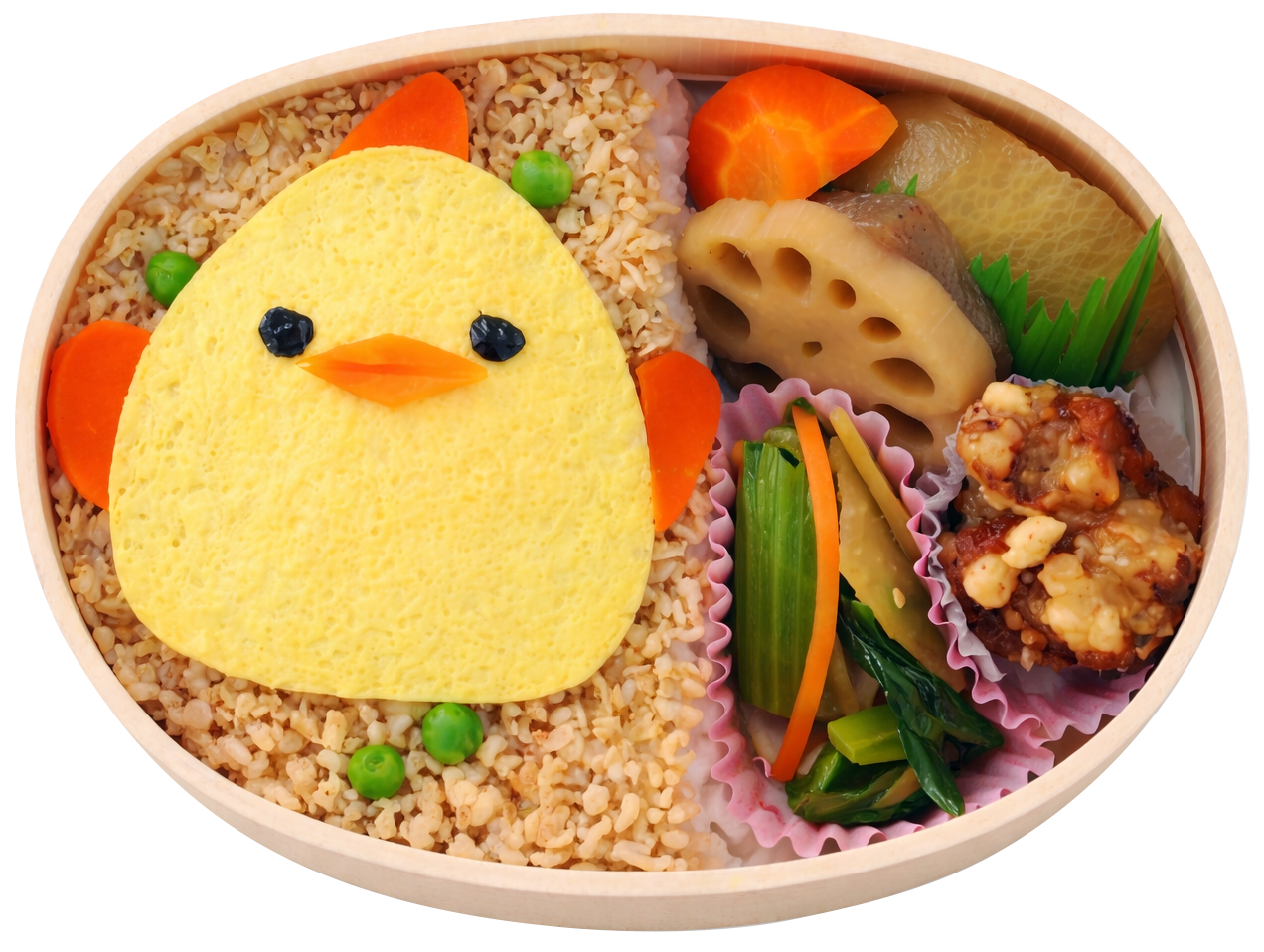 卵で仕立てた「ぴよりん」の下に鶏そぼろご飯を敷き詰め、家庭の味にこだわった手作り惣菜を盛り込んだ、幅広い世代におすすめのお弁当です。