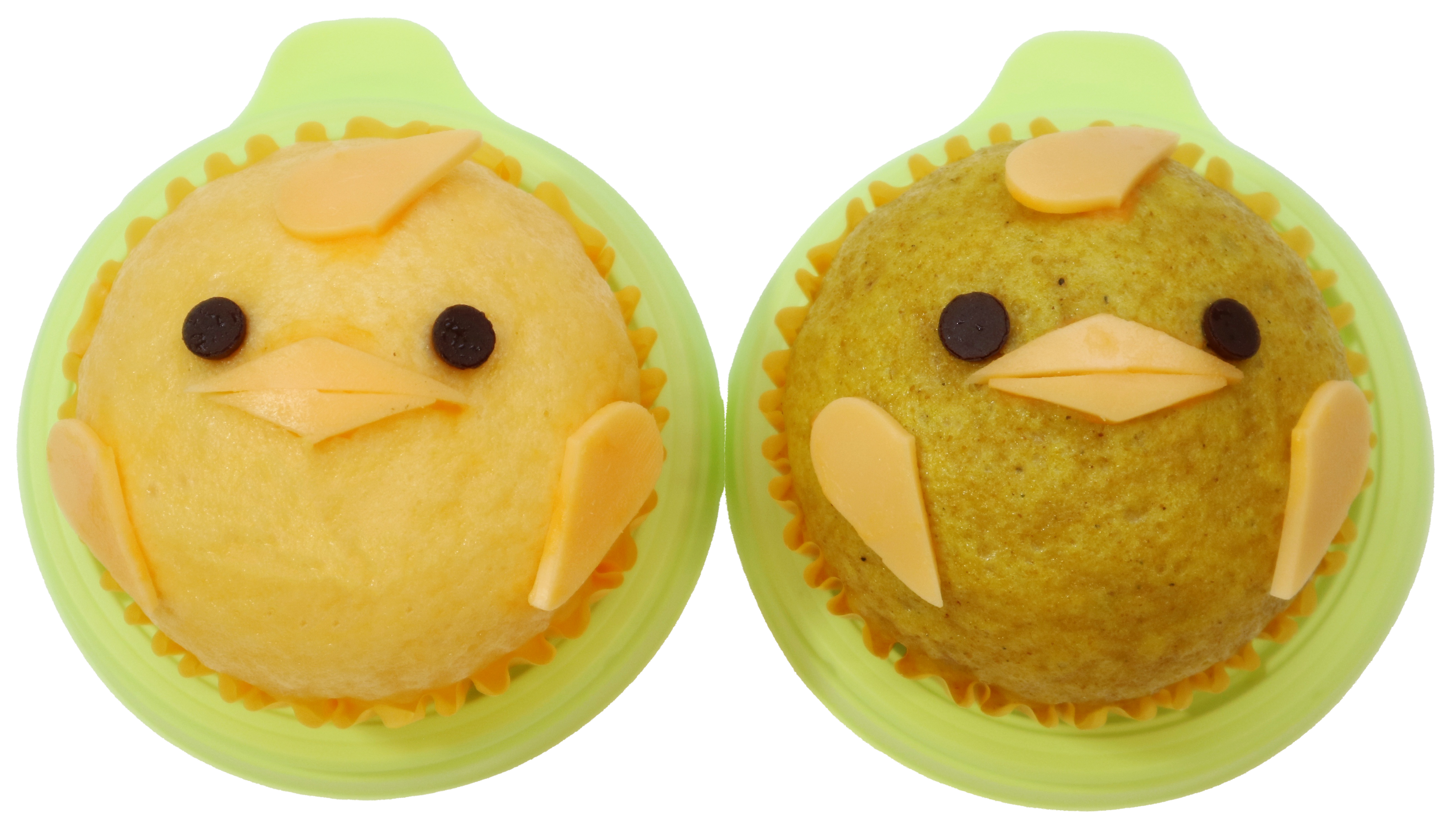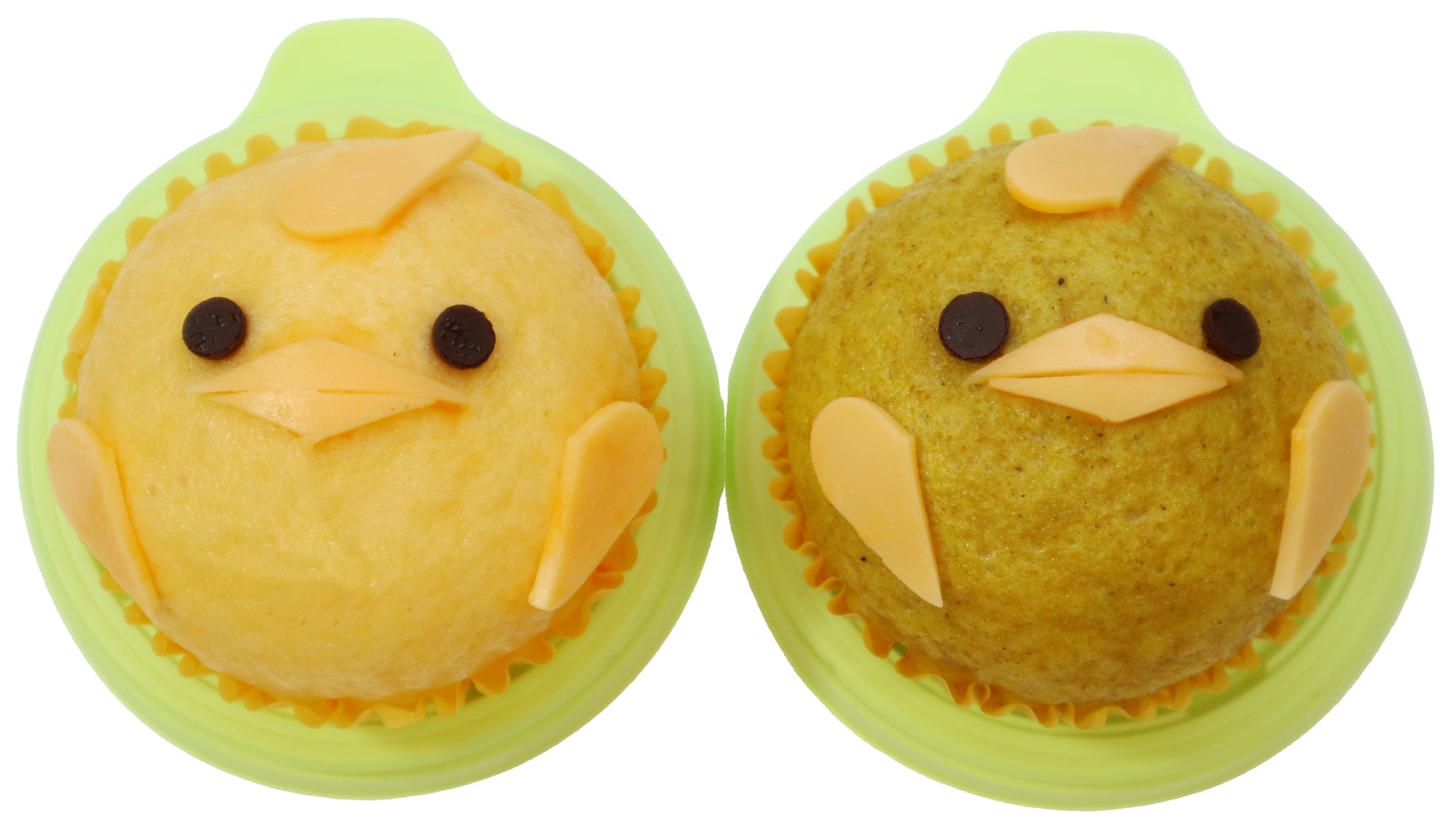 過去に好評だった「ぴよりんたまごぱん」をベースに生地にスパイスを練り込んだ改良カレー味に加え、新たに開発したやさしい甘さのカスタードクリーム味をラインアップ。味の異なる2種類の食べ比べも楽しめます。