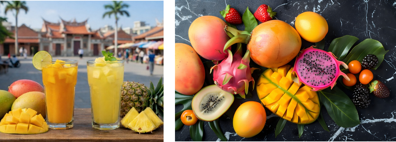 台湾有数のフルーツ産地として知られる台南産の果実を使用した特別メニューが登場いたします。温暖な気候のもとで育ったパイナップルとマンゴーは、濃厚な甘みと爽やかな酸味が特徴です。その魅力を生かした「台湾マンゴーサワー」「台湾パインサワー」は、すっきりとした飲み口で台湾グルメとの相性も抜群です。また、アルコールをお召し上がりにならない方にもお楽しみいただけるよう、「マンゴージュース」「パインジュース」もご用意。世代を問わず、台南フルーツの美味しさをご堪能いただけます。