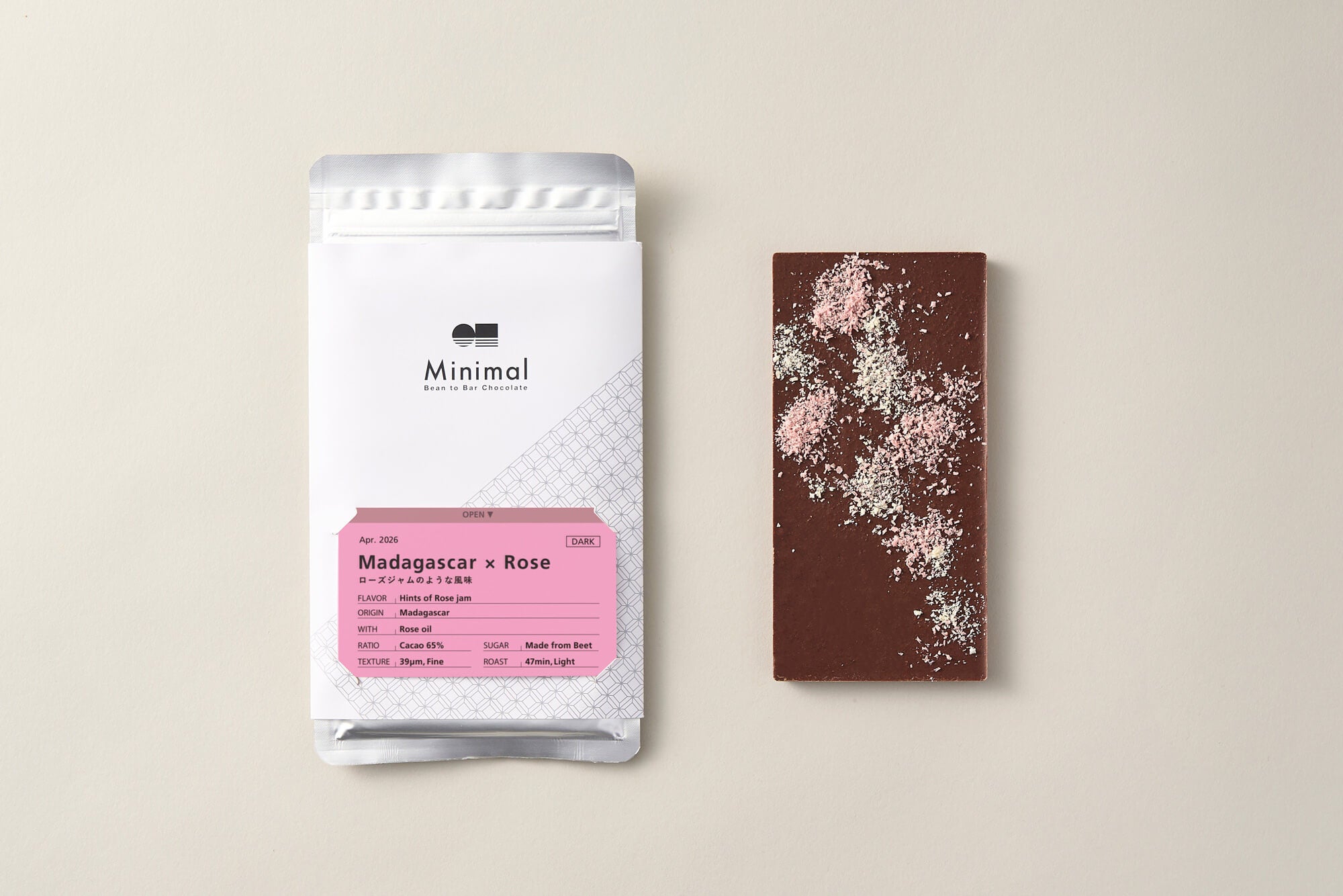 株式会社βace(東京都渋谷区、代表取締役:山下貴嗣)が展開する、日本発のスペシャルティチョコレート専門店 「Minimal – Bean to Bar Chocolate – (ミニマル)」( https://mini-mal.tokyo/ )は、母の日限定の板チョコレート「マダガスカル × ローズ」を、オンラインストアでは2026年4月21日(火)より、富ヶ谷本店・麻布台ヒルズ店・仙川店では、2026年5月1日(金)より数量限定で販売します。