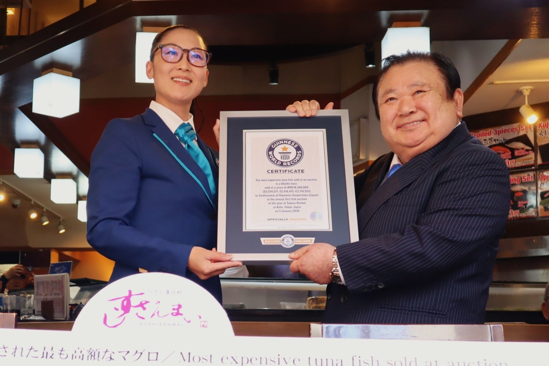 2026年1月5日の豊洲市場にて5億1030万円で落札した青森県大間産243kgの本マグロが「競りで競り落とされた最も高価なマグロ」としてギネス世界記録™に認定されました。