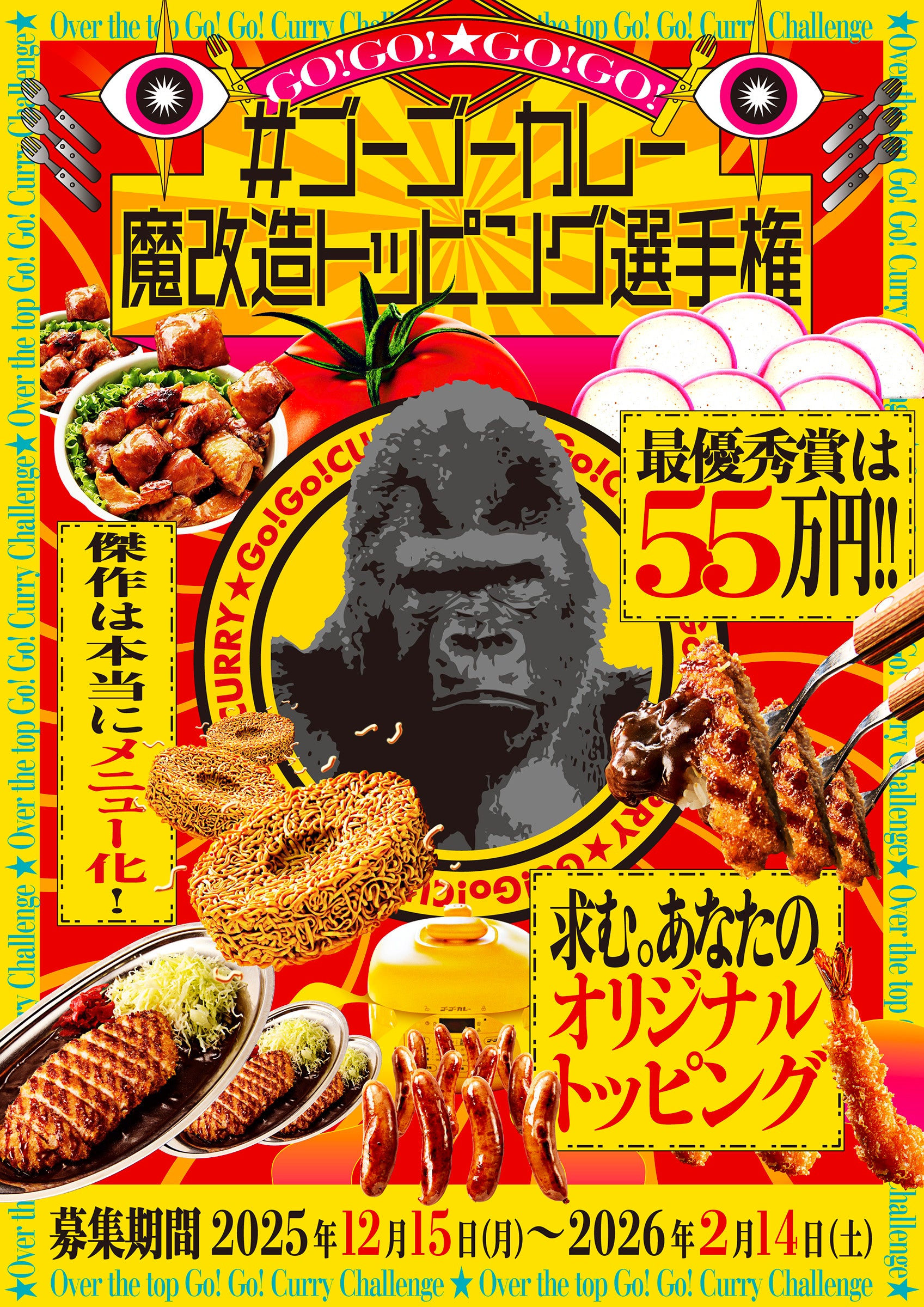 株式会社ゴーゴーカレーグループ(本社:石川県金沢市、CEO兼代表取締役社長:西畑 誠、以下 ゴーゴーカレー)は、2025年12月から募集を開始したSNS投稿企画「#ゴーゴーカレー魔改造トッピング選手権」について、応募総数が800件を超えたことをご報告するとともに、最優秀作品および各部門賞の発表を、5月5日(火・祝)=ゴーゴーバースデーに実施することをお知らせします。