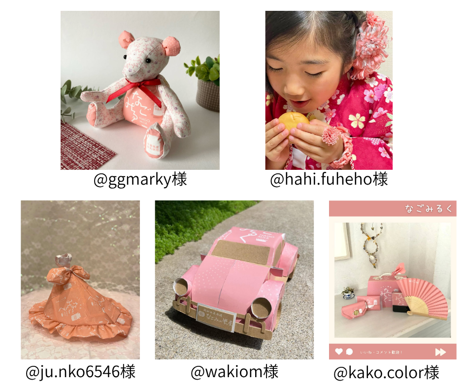 当選者様の作品写真を、Instagramアカウントユーザーネーム(@とアルファベット、数字、記号のみで表示されるもの)とともに、なごみの米屋ホームページ及びInstagramの投稿にてご紹介させていただきます。