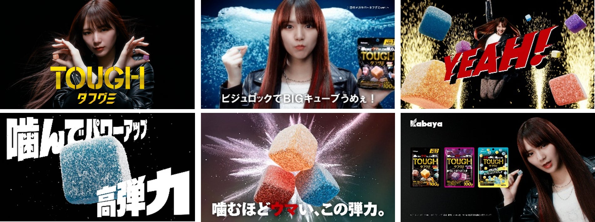 アップテンポな曲調とキャッチーな歌詞に、『タフグミ』ならではの「高弾力食感」と「サワーパウダーの刺激」を想起させるシズル表現を掛け合わせることで、“ウマさ”を強烈なインパクトで伝えるWeb-CMに仕上げています。