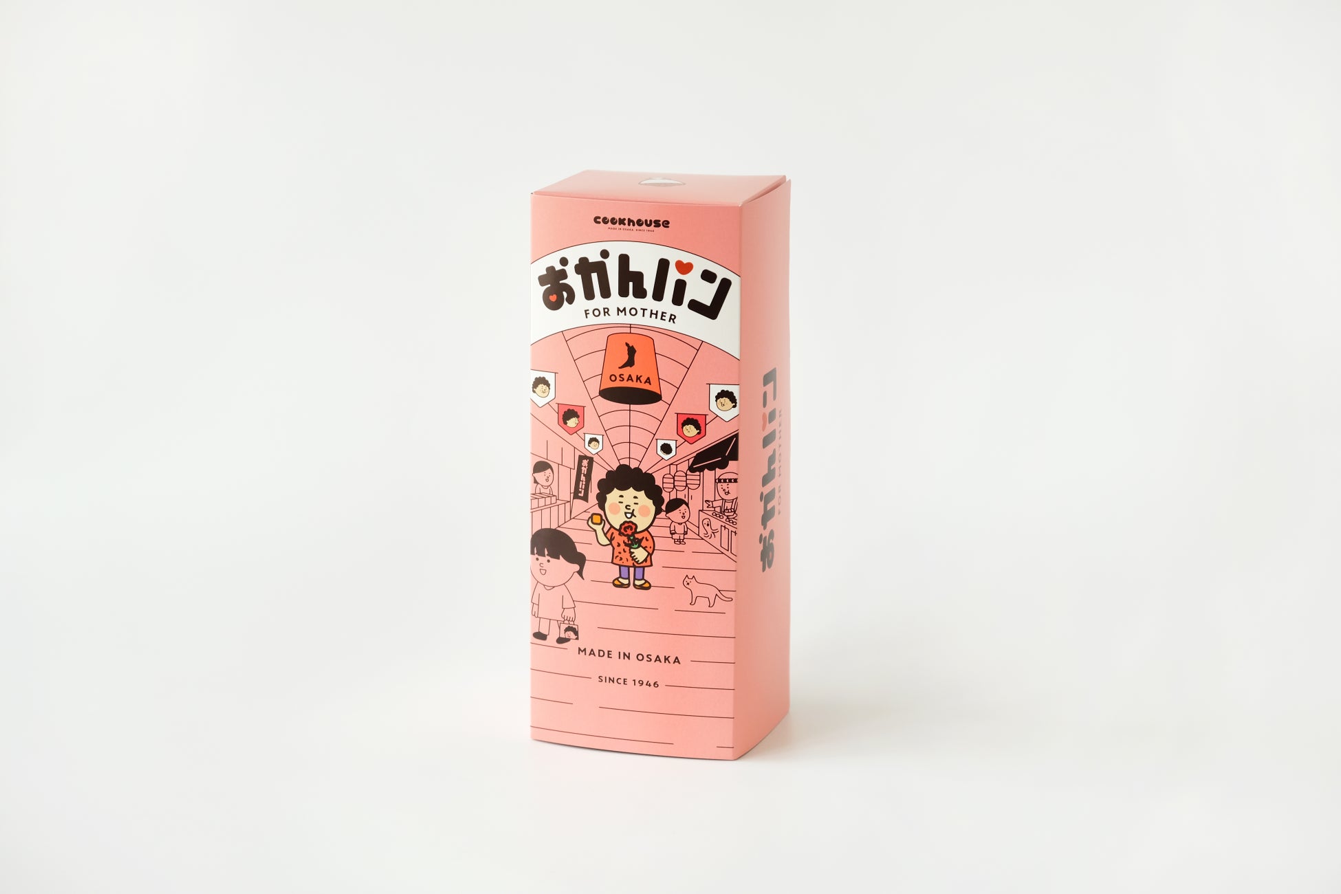 今回の「おかんパン(おかんの日)」は、カーネーションを手にしたおかんが描かれた母の日仕様の限定パッケージで登場します。 日頃照れくさくて言えない「いつもありがとう」の気持ちを、大阪らしいユーモアと共に伝えるのにぴったりな商品です。