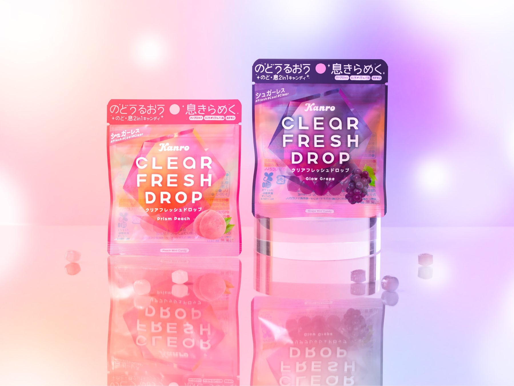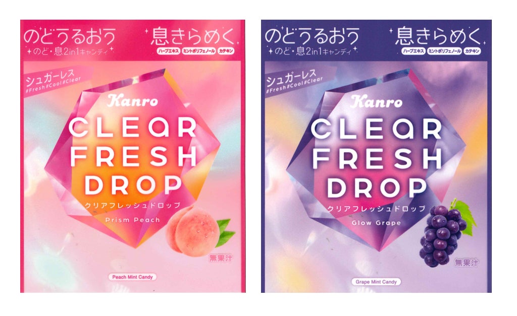 カンロ飴やピュレグミなどでおなじみのカンロ株式会社(本社:東京都新宿区、代表取締役社長 村田 哲也、以下 カンロ)は、「のど」も「息」もリフレッシュできる2in1キャンディ「クリアフレッシュドロップ プリズムピーチ」と「クリアフレッシュドロップ グロウグレープ」を2026年4月28日(火)より全国のセブン-イレブン店舗限定で発売いたします。