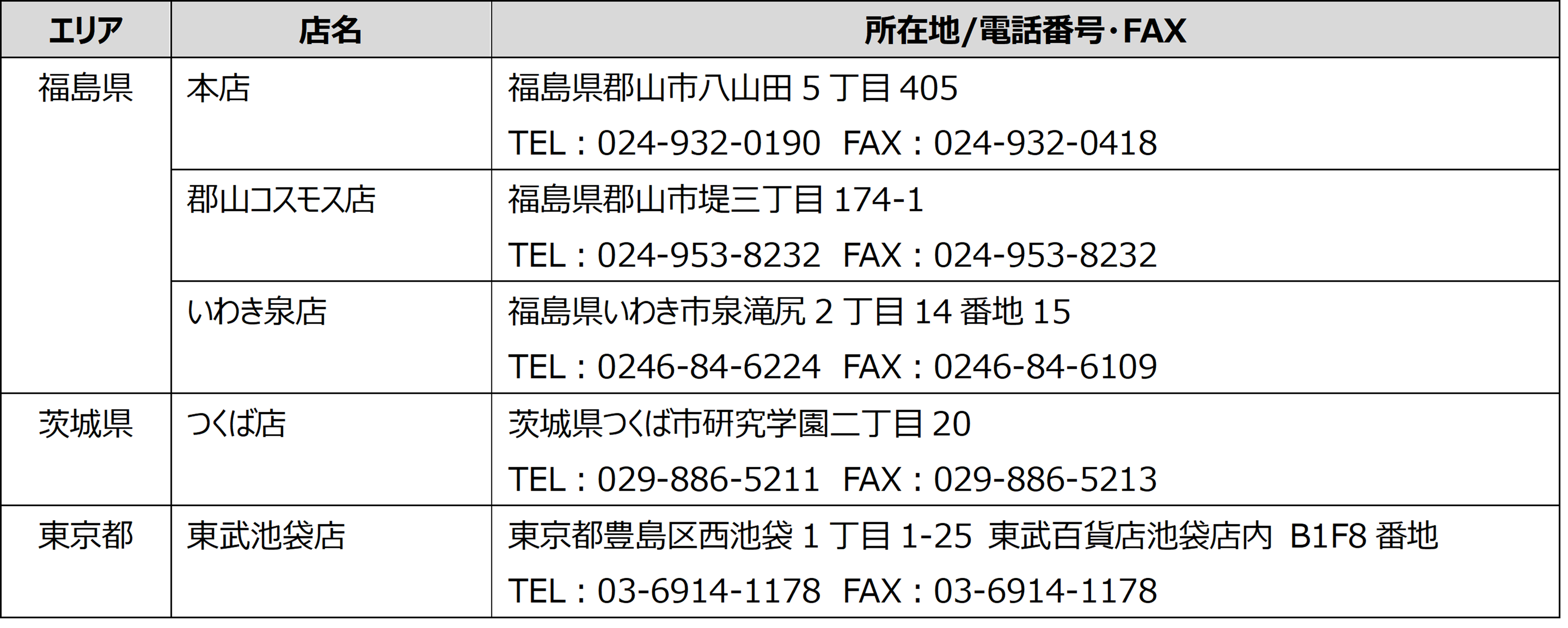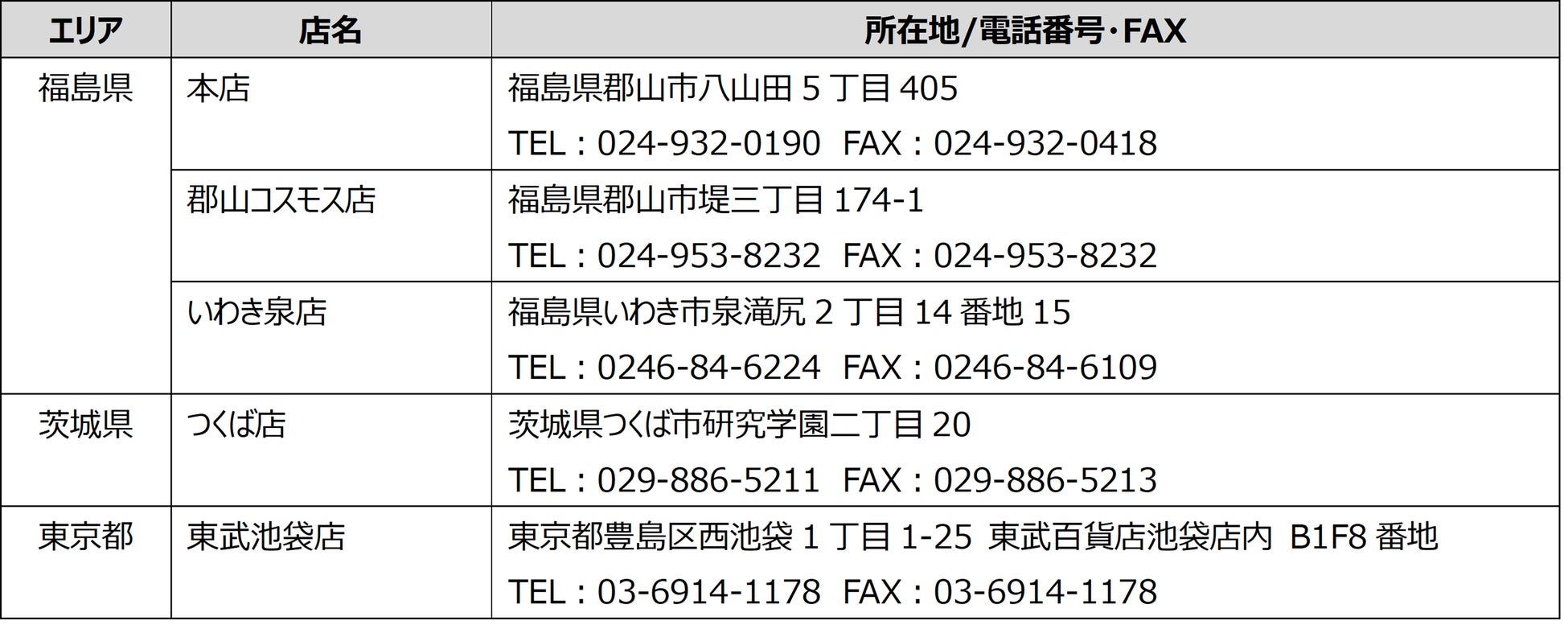 フルーツピークス 3店舗(会津店/福島西店/仙台富沢店)