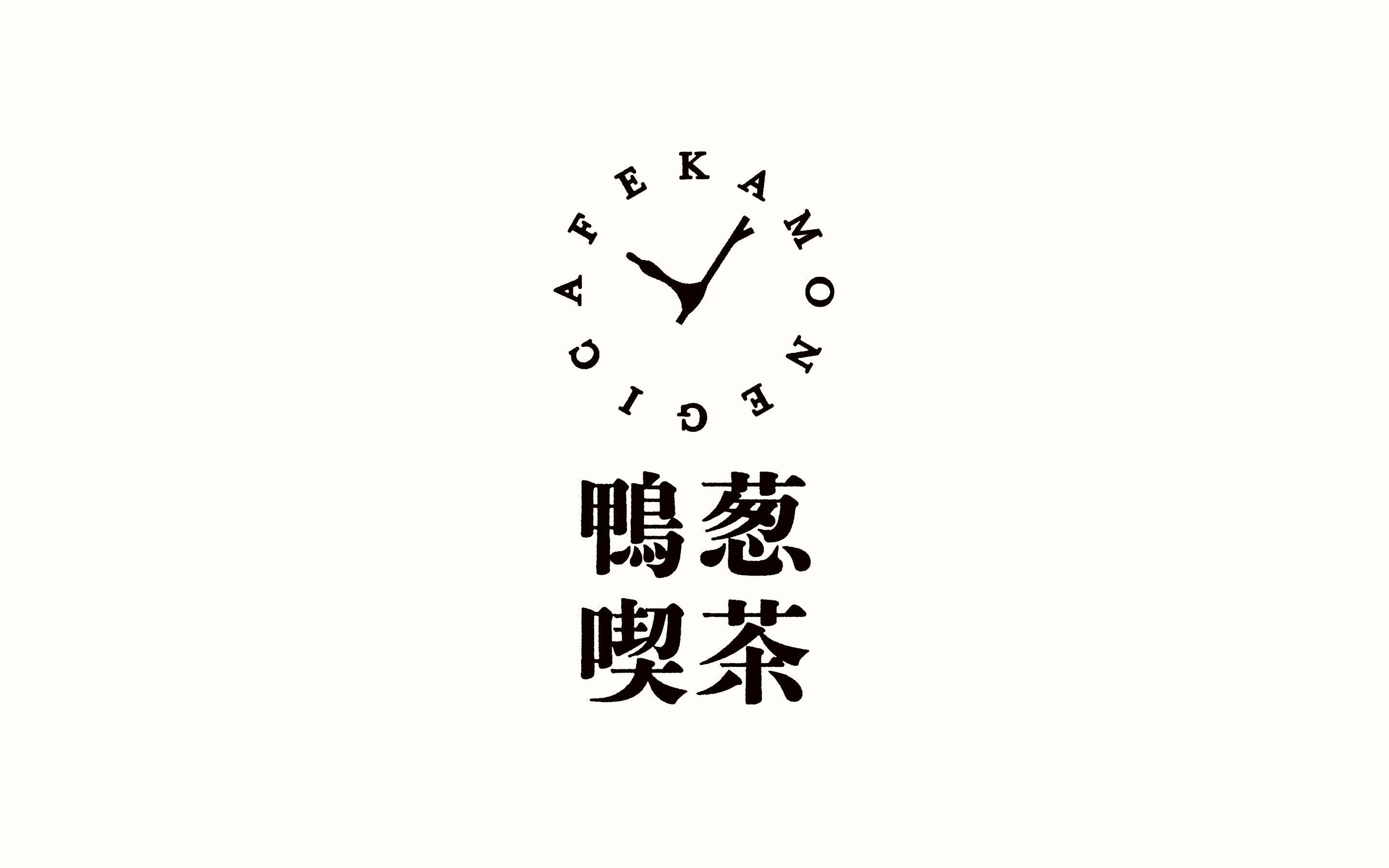 QANDOメンバーによる社内公募を経て決定したロゴは、鴨と葱を時計の長針と短針に見立て、「KAMONEGI CAFE」の12文字を文字盤に配置。時間を示す数字を持たない時計とすることで、人それぞれに異なる時の感じ方やカフェで過ごす思い思いの時間、長針と短針のように、離れたり近づいたりしながら、またどこかで出会う。そんな、カフェに訪れる人たちやスタッフとの間に生まれる心地よい距離感と関係性を表現しています。