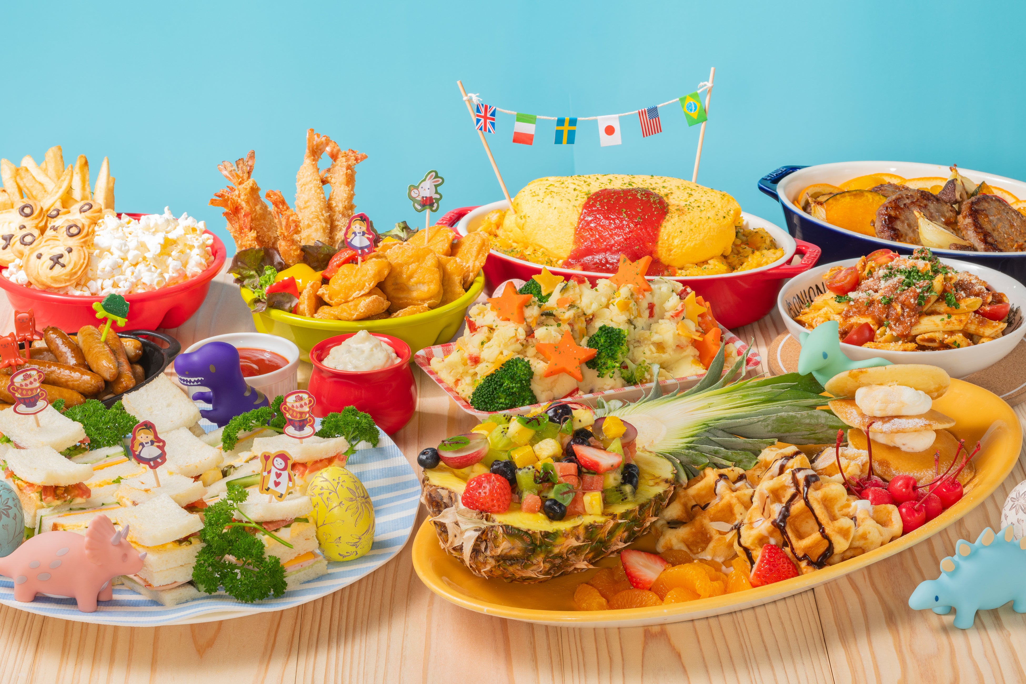ゴールデンウィーク限定の特別メニューが勢ぞろいする本フェアでは、シェフが目の前で焼き上げる国産牛ステーキやローストチキン、濃厚ビスクスープ、パスタなど、世代を問わずお楽しみいただけるお料理を取り揃えました。前菜からデザートまで、ランチは約60種類、ディナーは70種類以上のメニューが並びます。