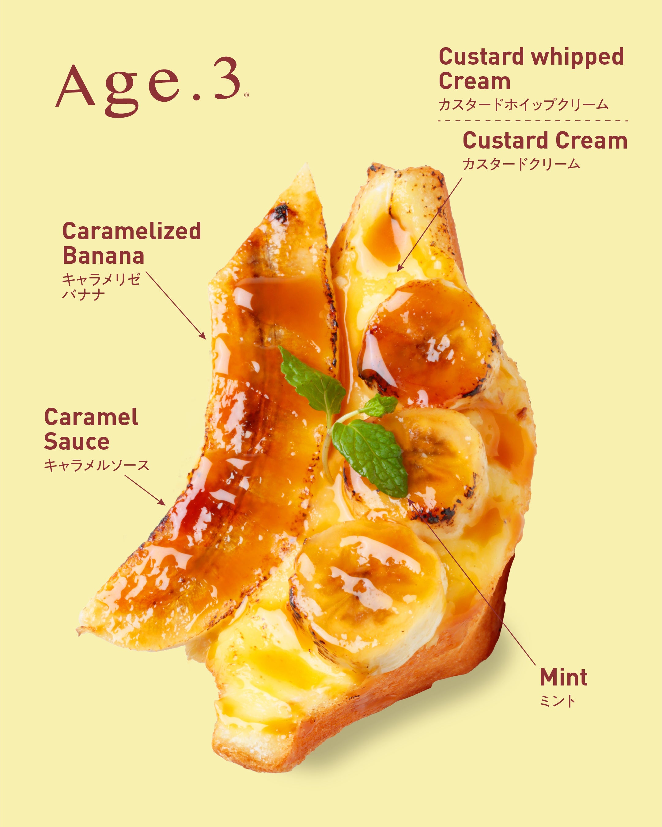 株式会社ANCHORが展開する「Age.3(アゲサン)」は、全店舗で不動の1位を誇る“クレームブリュレ”をベースにした新商品『バナナブリュレ(BANANA BRÛLÉE)』を5月1日(金)より発売