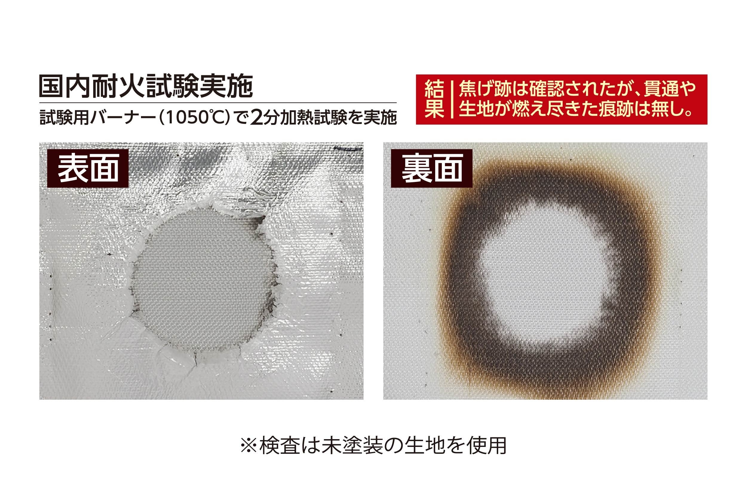 両商品の素材には、耐火性が高く特殊加工された「ガラス繊維布(グラスファイバークロス)」を2重構造で使用。約1,000℃のバーナーで2分間加熱する国内耐火テストを実施し、高い耐火性能が確認されました。また、日本防災士機構認定の「防災士」による監修を行い「減災」の観点においても推奨できる商品です。