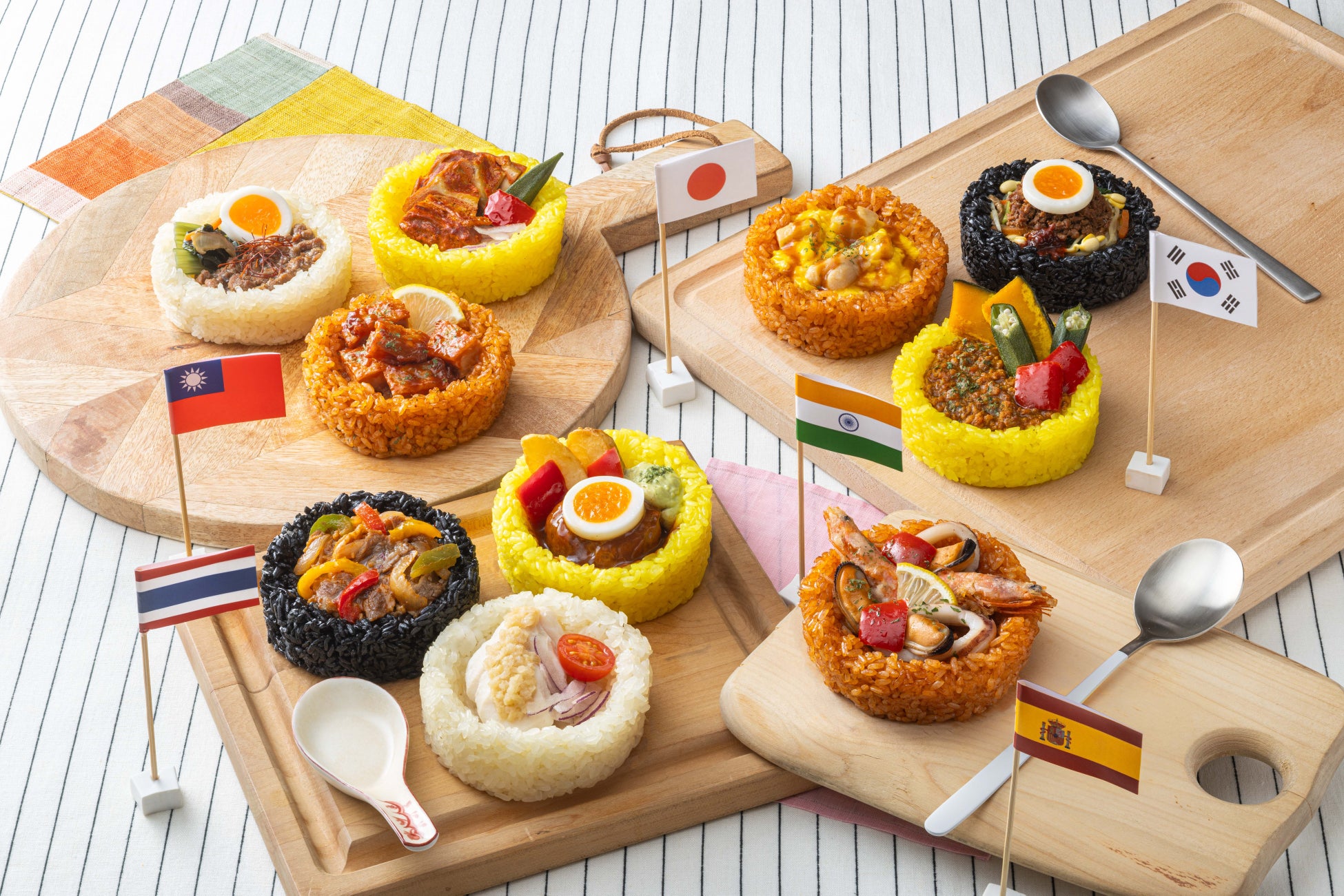 このたび登場するのは、管理栄養士監修の新たなラインアップ「おこわールド」。“旅するように楽しむ”をコンセプトに、世界各国の人気グルメをおこわで表現した具材たっぷりの新感覚メニューは、おいしさだけでなく、見た目、おこわのもちもち食感も楽しむことができます。