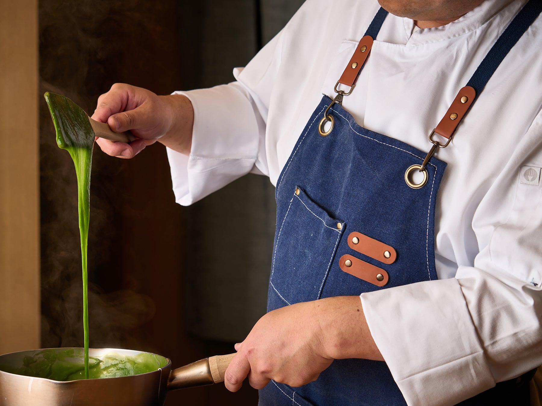 抹茶アパレイユ(卵液)に一晩じっくりと漬け込んだ「抹茶フレンチトースト」は、目の前でバターの香りを漂わせながら焼き上げるライブ感が魅力です。