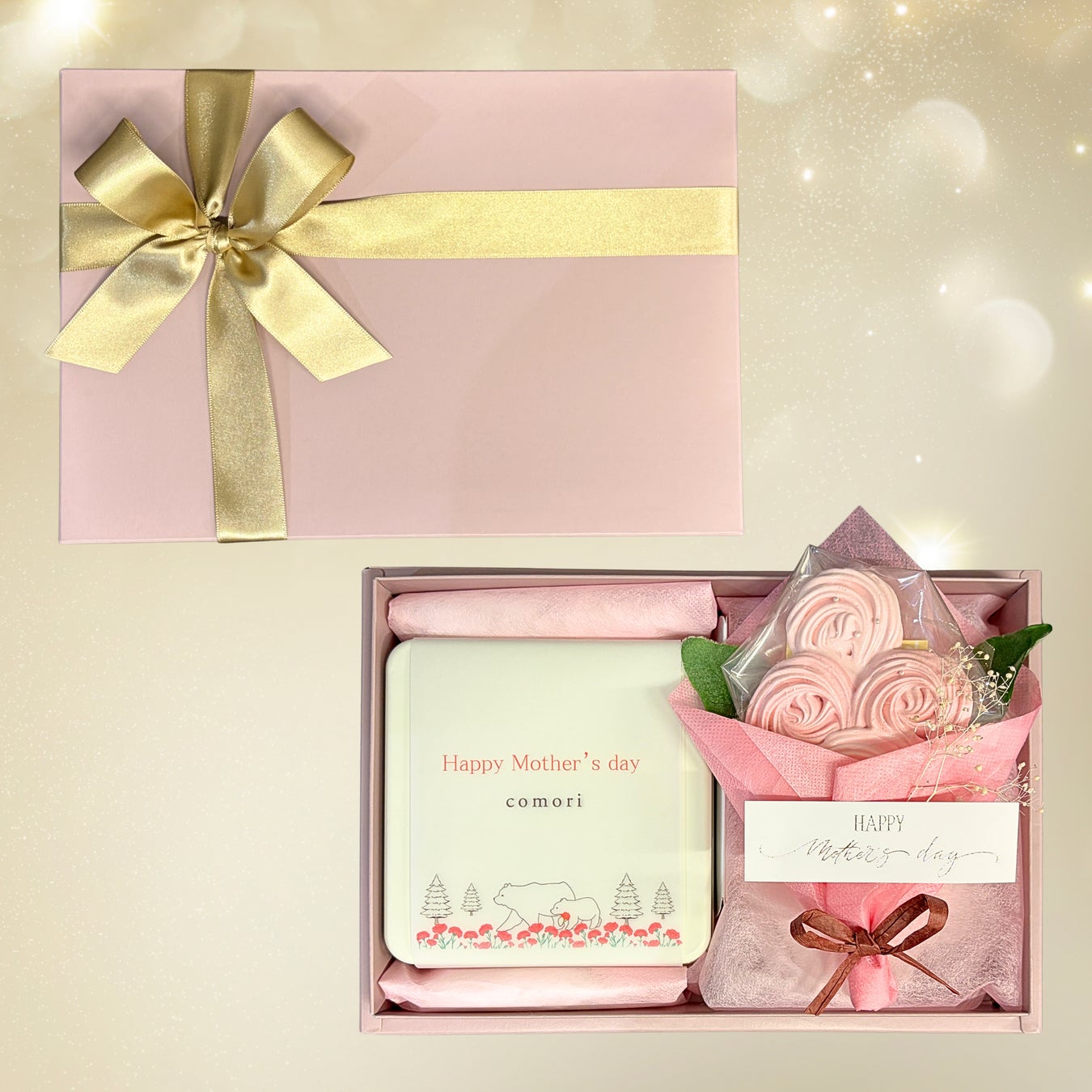 【商品名】母の日ギフト特別パッケージ クッキー缶とメレンゲ花束のギフトボックス