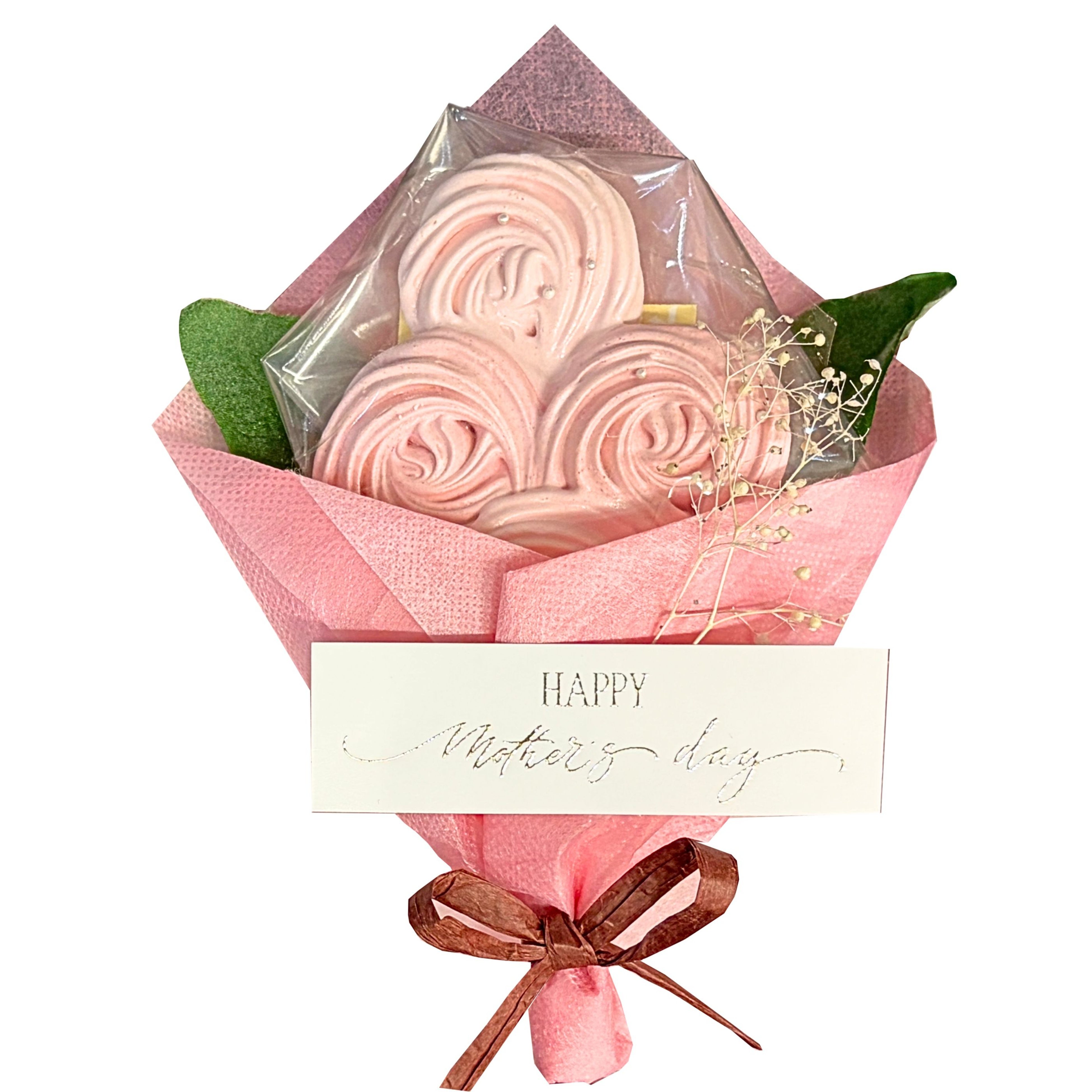 新しくメレンゲのピンク色を多層にすることで花束に立体感や奥行きが生まれ寄り華やかなブーケに生まれ変わりました。また線を細かくすることでこれまで以上にカーネーションの形に近づけて母の日にぴったりな商品になっています。