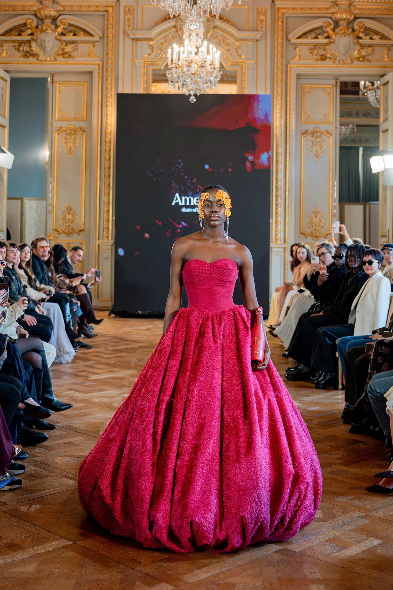 ブラック、レッド、シルバー、オレンジ、ピンク、ホワイトといった多彩なラインナップは、それぞれ異なる個性と世界観を持ち、まるでアートピースのようにランウェイを彩りました。