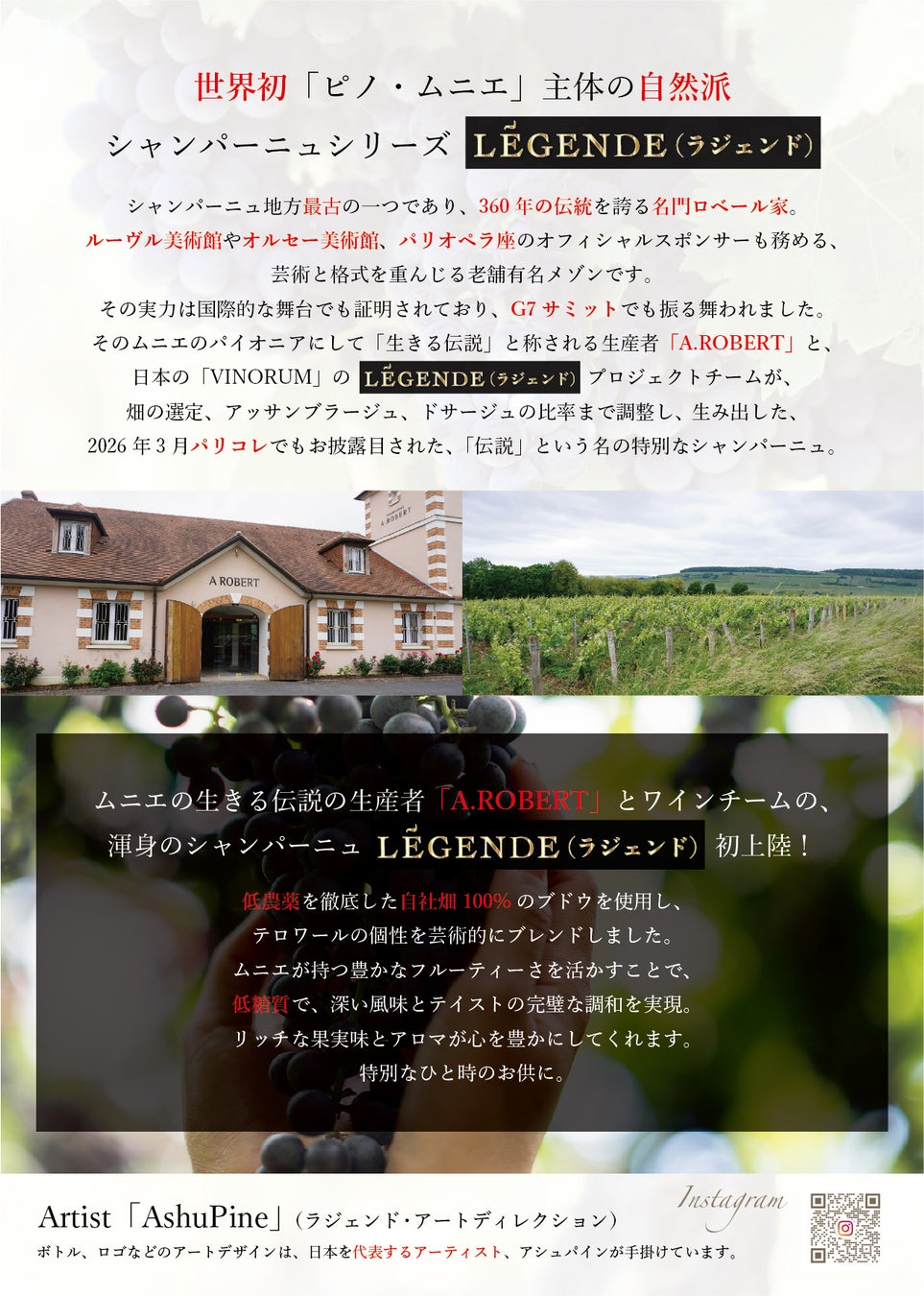 株式会社フォーシス アンド カンパニー(本社:東京都渋谷区、代表取締役社長:三輪 泰央)は、「ピノ・ムニエ」を主体とした自然派シャンパーニュシリーズ「LÉGENDE(ラジェンド)」を、2026年3月にフランス・パリのシャングリ・ラ ホテル パリにて開催された「Fashion Week Studio」主催のショーにて初披露いたしました。