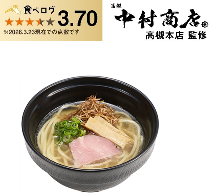 4月22日(水)からは、食べログ点数3.70の高評価を獲得している人気店“中村商店 高槻本店”監修の「香味清湯 塩らーめん」を販売いたします。今回監修いただいた“中村商店 高槻本店”は、飽きのこないおいしさと、専門店ならではのこだわりを両立させ、地元大阪・高槻で長く愛されているラーメンの名店です。スシローで販売する「香味清湯 塩らーめん」は、鶏、豚と魚介の旨みを合わせることでスープに深みを出し、あっさりとしながらも旨みを凝縮したコク深い一杯に仕上げました。