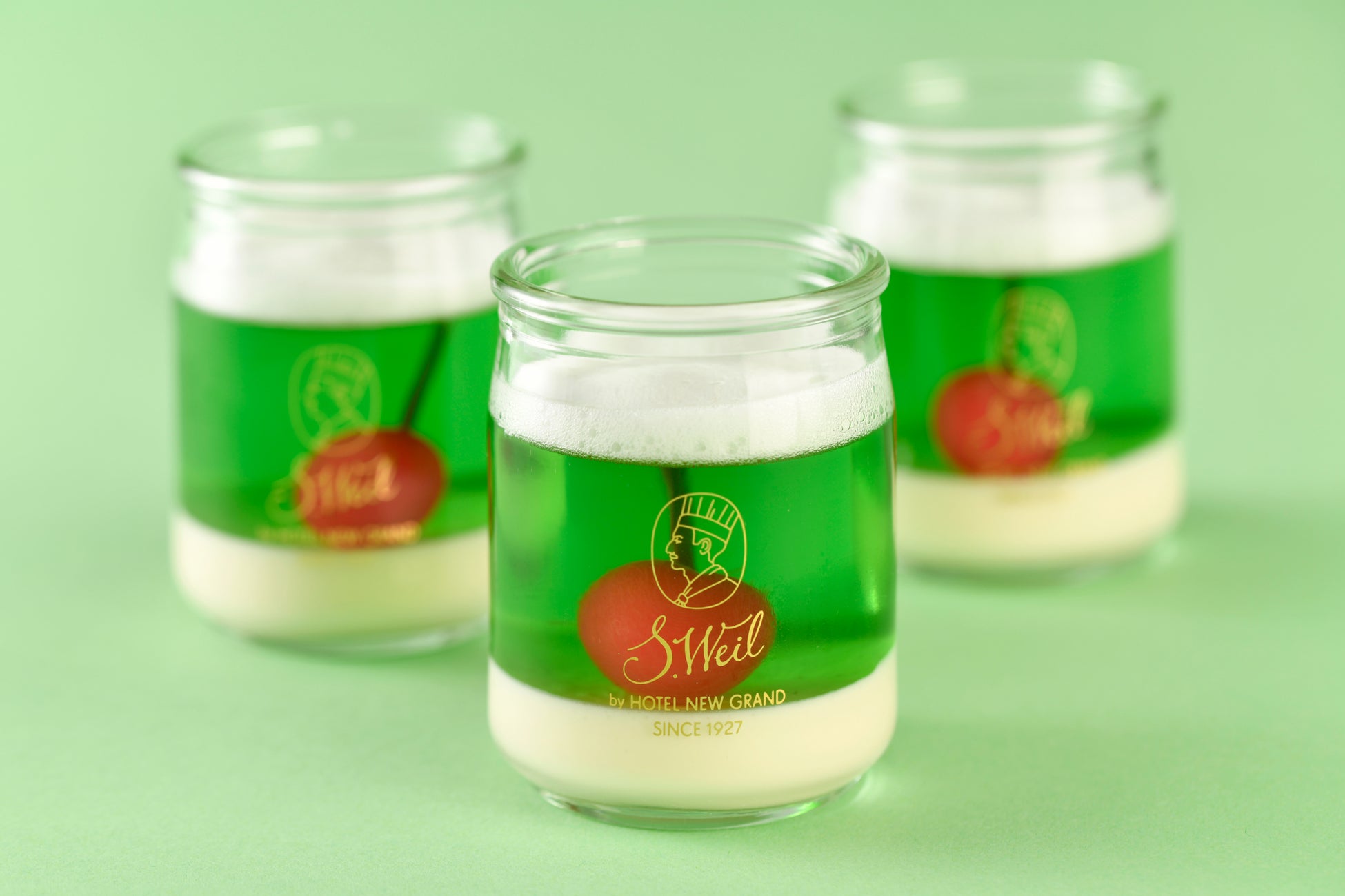 バニラ薫るなめらかで濃厚なババロアにメロンソーダに見立てたぷるぷるのゼリーを重ね、トップにはふわふわな泡をトッピングし、ソーダのしゅわしゅわ感を表現しました。つるんとしたゼリーの爽やかな食感とくちどけなめらかなババロアが織りなす味わいは、まるで“食べるクリームソーダ”です。昔懐かしいクリームソーダの味わいをそのまま閉じ込めた、カラフルでレトロ可愛いひんやりスイーツです。