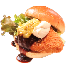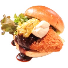 名古屋名物ナゴヤメシと緑黄色社会コラボレーションバーガー。濃厚な味噌カツにマヨネーズとマスタードをトッピング。王道の名古屋名物バーガー。