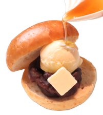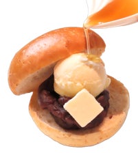 名古屋名物ナゴヤメシと緑黄色社会コラボレーションバーガー。小倉バタートーストにバニラアイスとメープルシロップを合わせスイーツにもなる新感覚バーガー。