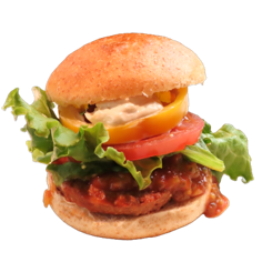 緑、赤、黄、緑黄色社会カラーバーガー。大豆ミートに、バンズ、ソース全て植物性プラントベースのヴィーガンバーガー。ヴィーガンの方でも食べられるヘルシーバーガー。