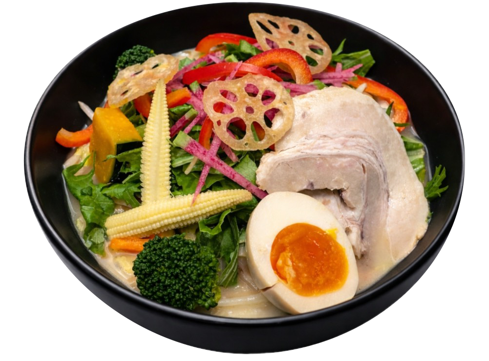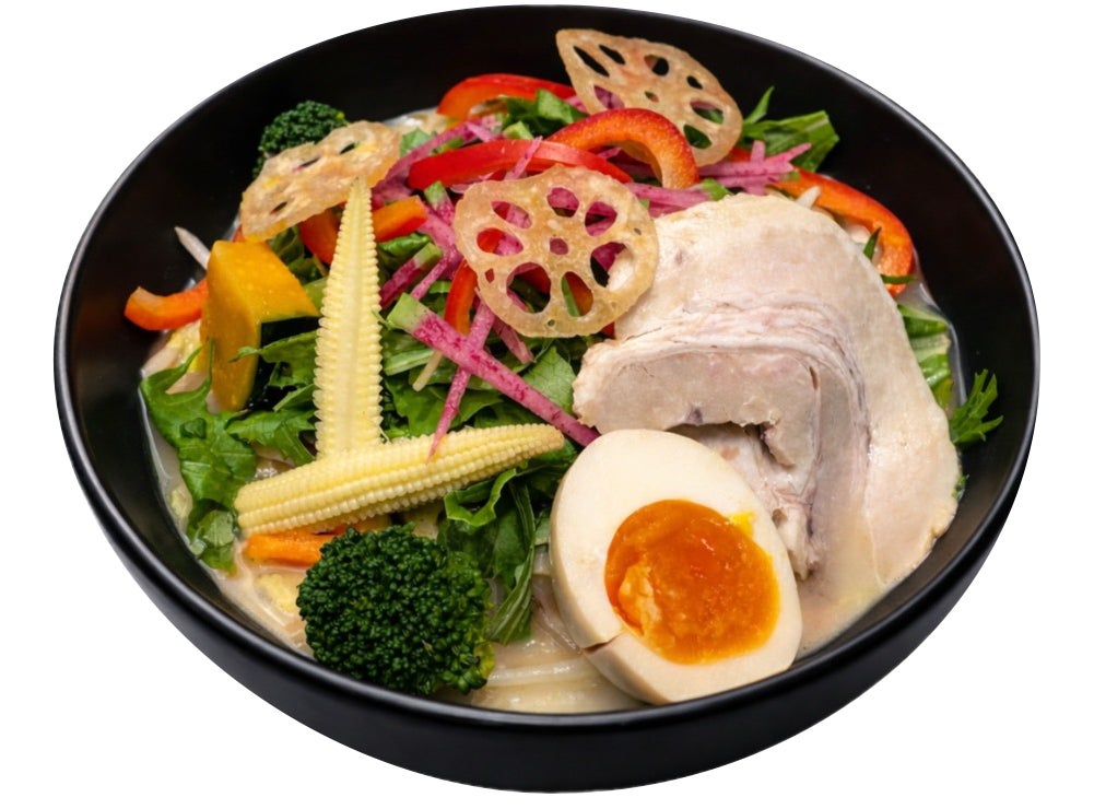 リョクシャカをイメージした緑黄色野菜たっぷりのタンメン。セットはチャーハン・唐揚げ・水餃子から1つ選択可能。