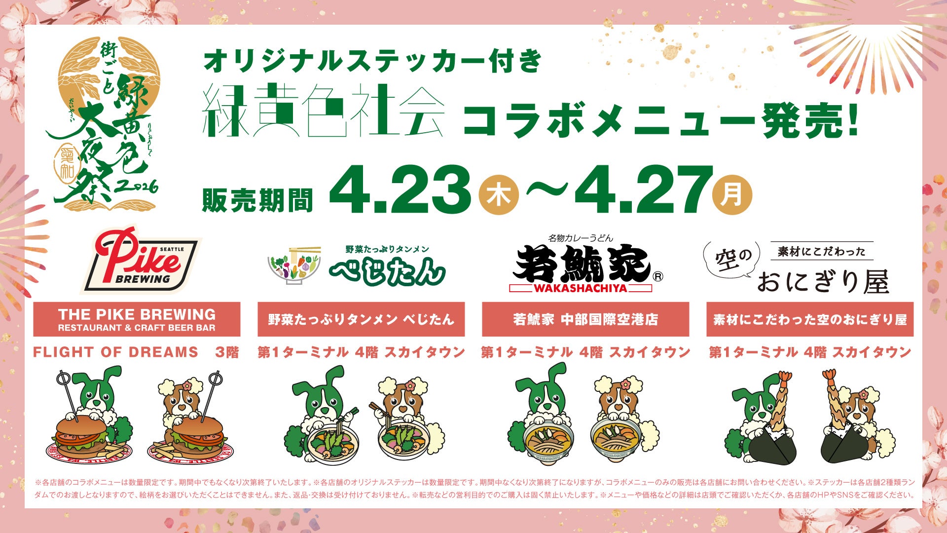 中部国際空港は、緑黄色社会ライブに合わせ実施される「“街ごと”緑黄色大夜祭2026」に参加!セントレア館内でも緑黄色社会の世界観を楽しんでいただけるよう、空港ならではの特別企画を展開し、盛り上げます!