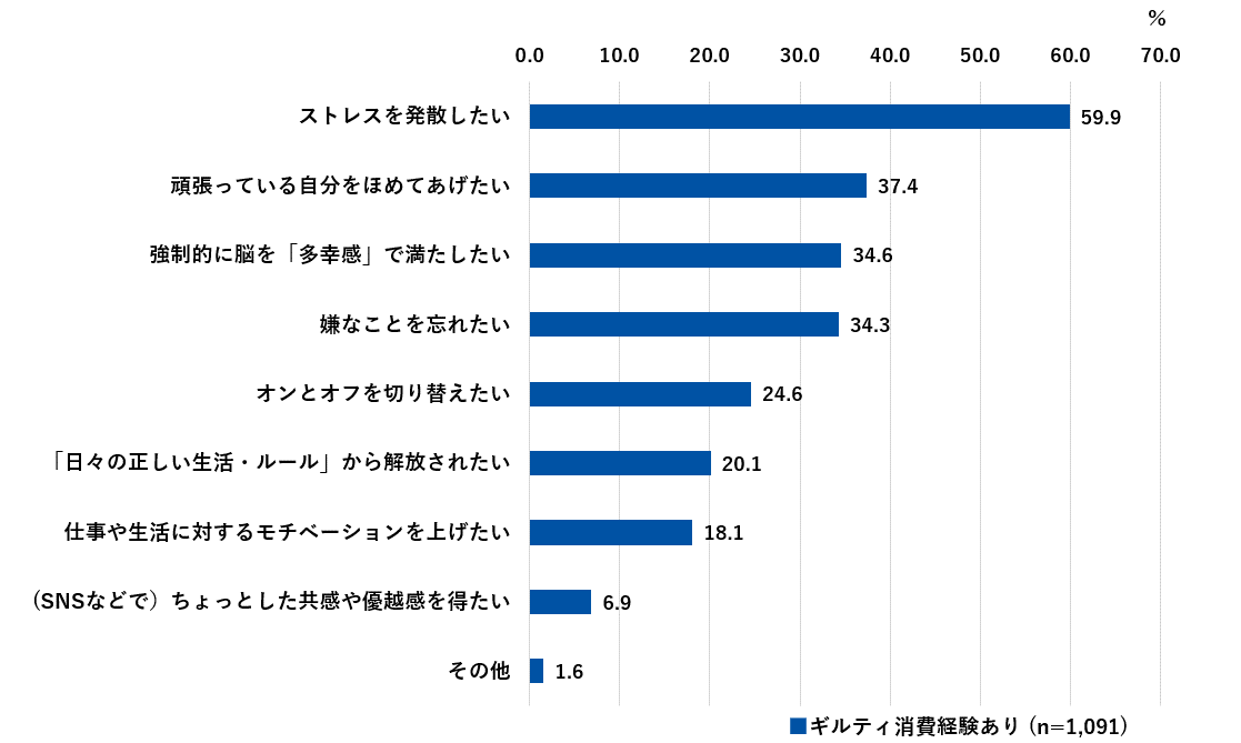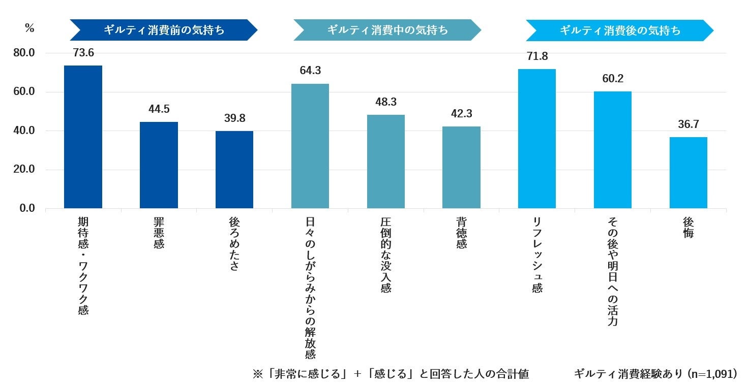 期待感・リフレッシュ7割に対し、後悔はわずか3割。ギルティ消費に「明日への活力」を見出す現代人