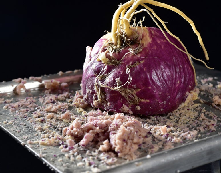ホースラディッシュに近い食感と味わいです。野菜として生で食せば非常に辛いですが、一方で豊富に含まれるアミノ酸が豊かなうまみを感じさせます。さらに、甘さもかなりあります。