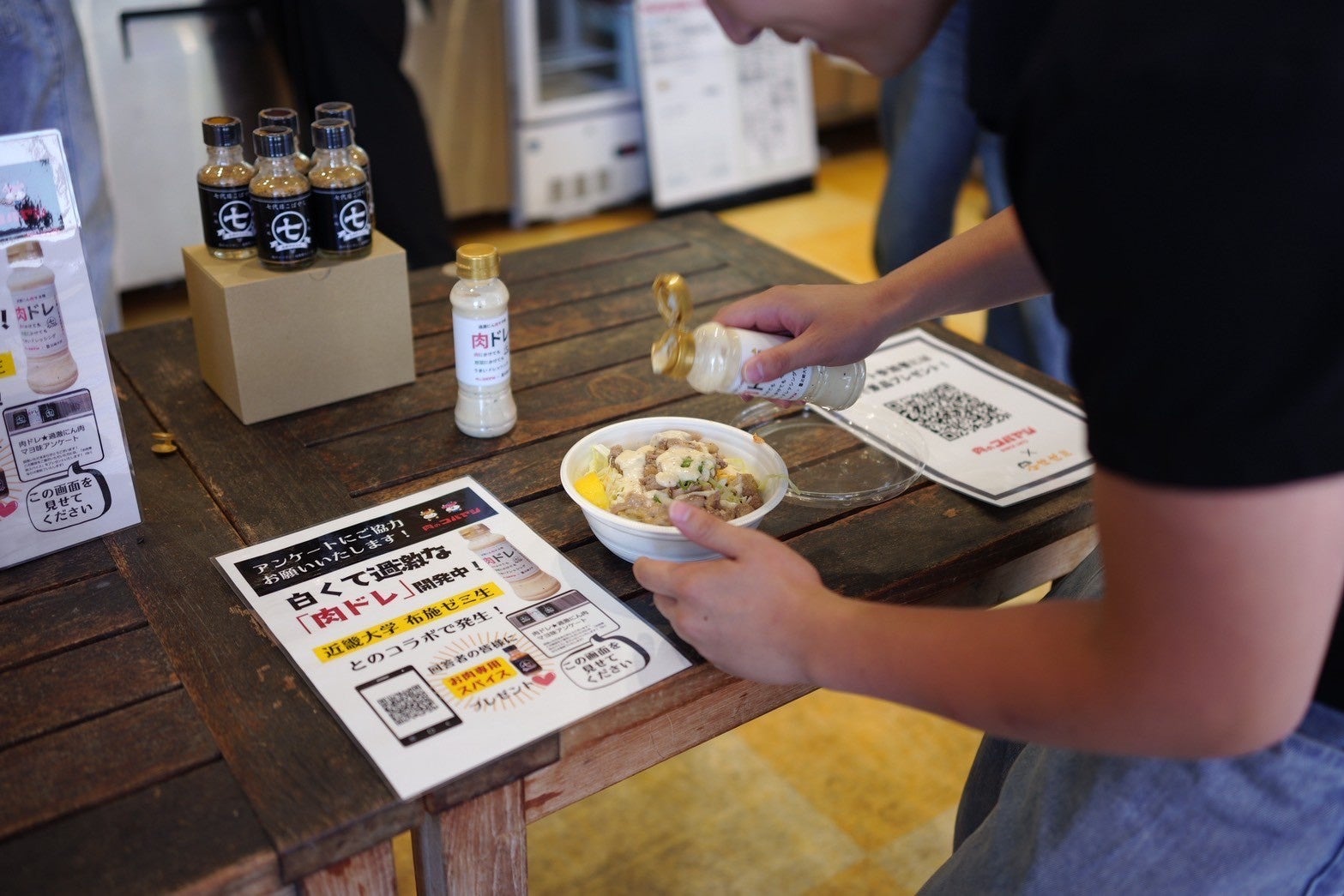 食肉卸業の株式会社コバヤシ(所在地:大阪府吹田市江の木町14、代表取締役社長:小林裕一郎、以下、肉のコバヤシ)と、近畿⼤学経営学部(⼤阪府東⼤阪市)経営学科教授 布施匡章ゼミとの産学連携プロジェクトとして、肉にも野菜にも合う新感覚ドレッシング「肉ドレ」を共同開発しました。