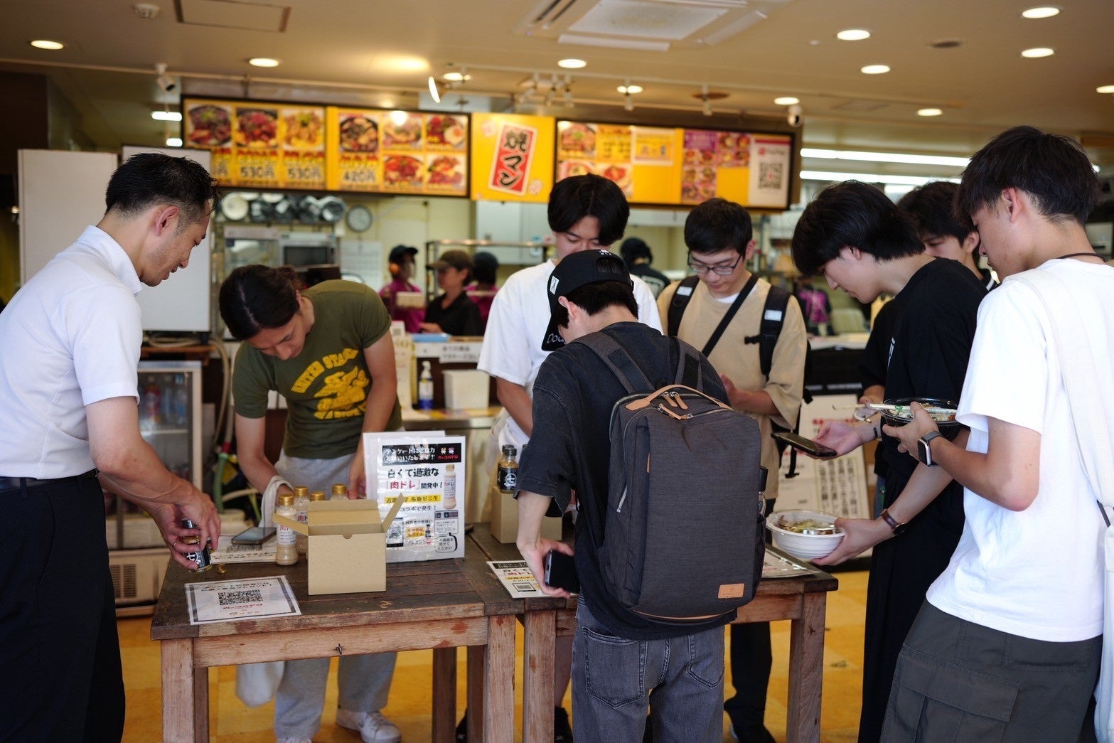 若い世代の生の声を聞くために、近畿大学内にある「味店 焼マン 近畿大学Eキャンパス店」にて試食アンケートを実施しました。