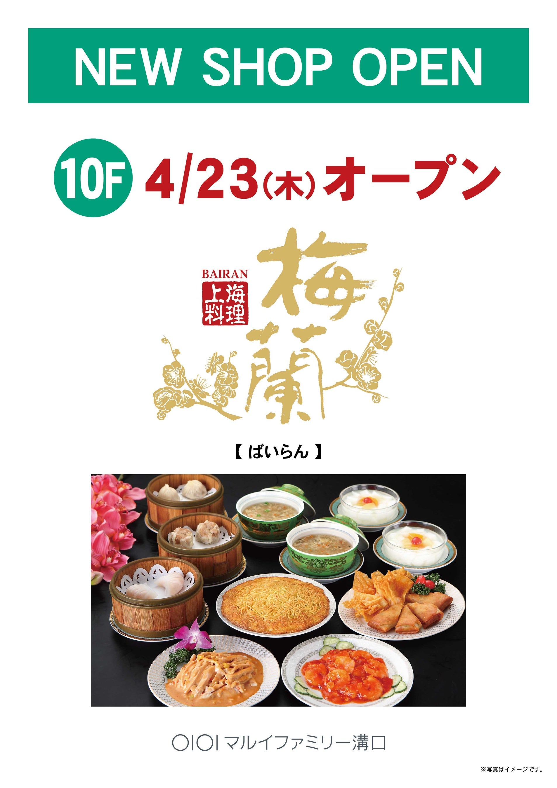 マルイファミリー溝口(株式会社丸井、本社:東京都中野区、代表取締役社長:青野 真博)10Fレストラン街に、中華料理店「梅蘭」がオープンいたします。川崎市では初のオープンとなります。