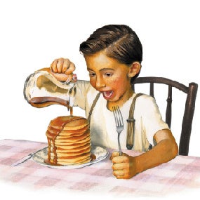 大人たちは背広のポケットからウイスキーを取り出し、メープル坊やは真似をしてメープルシロップを忍ばせました。 誰もいない合間をねらって、キッチンの戸棚からメープルのシロップをこっそり取ってはポケットに入れて、愛犬との散歩の時間や、裏庭の木に登ってペロリ。