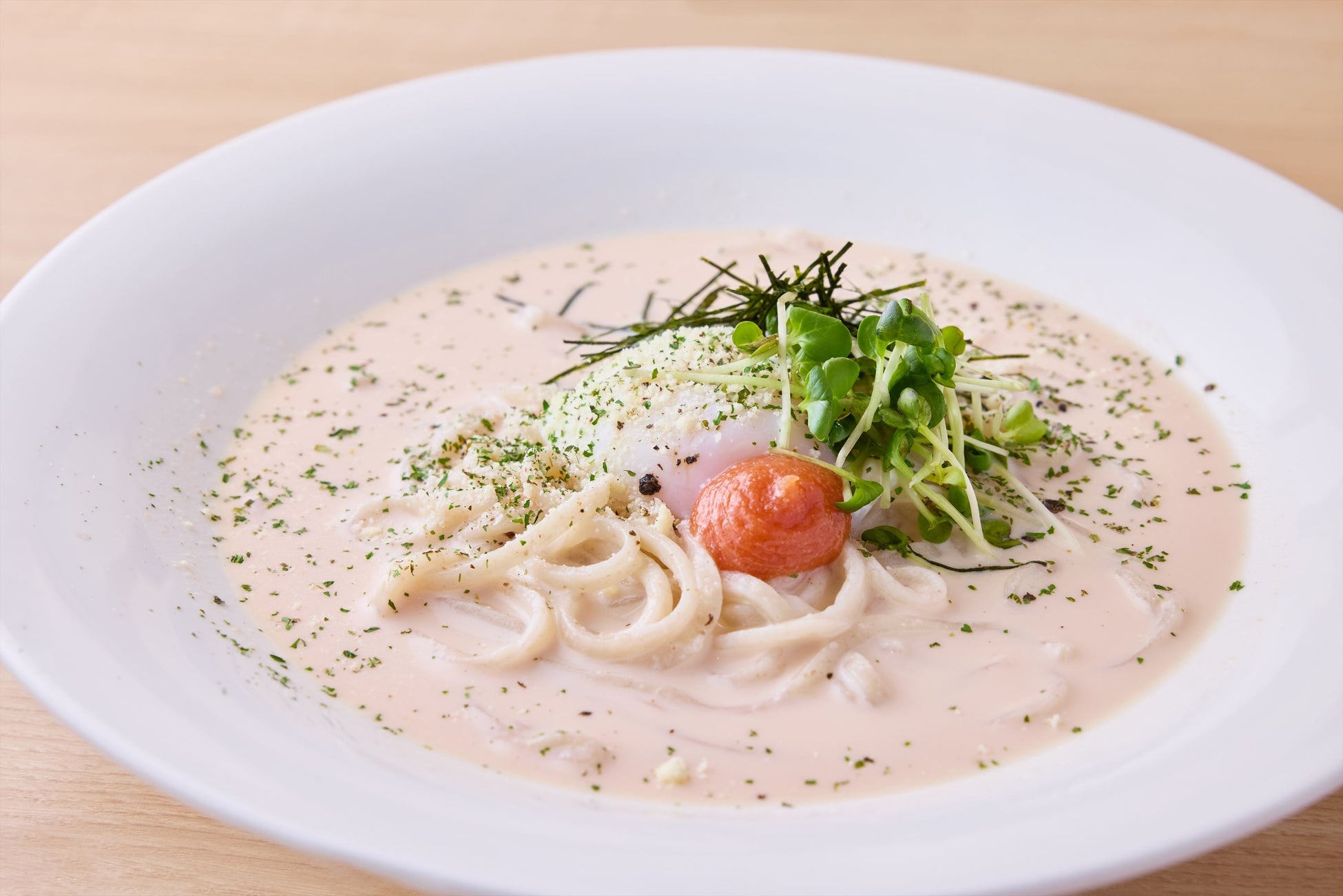 純白のベールに包まれた「白いカレーうどん」と「白い明太子クリームうどん」