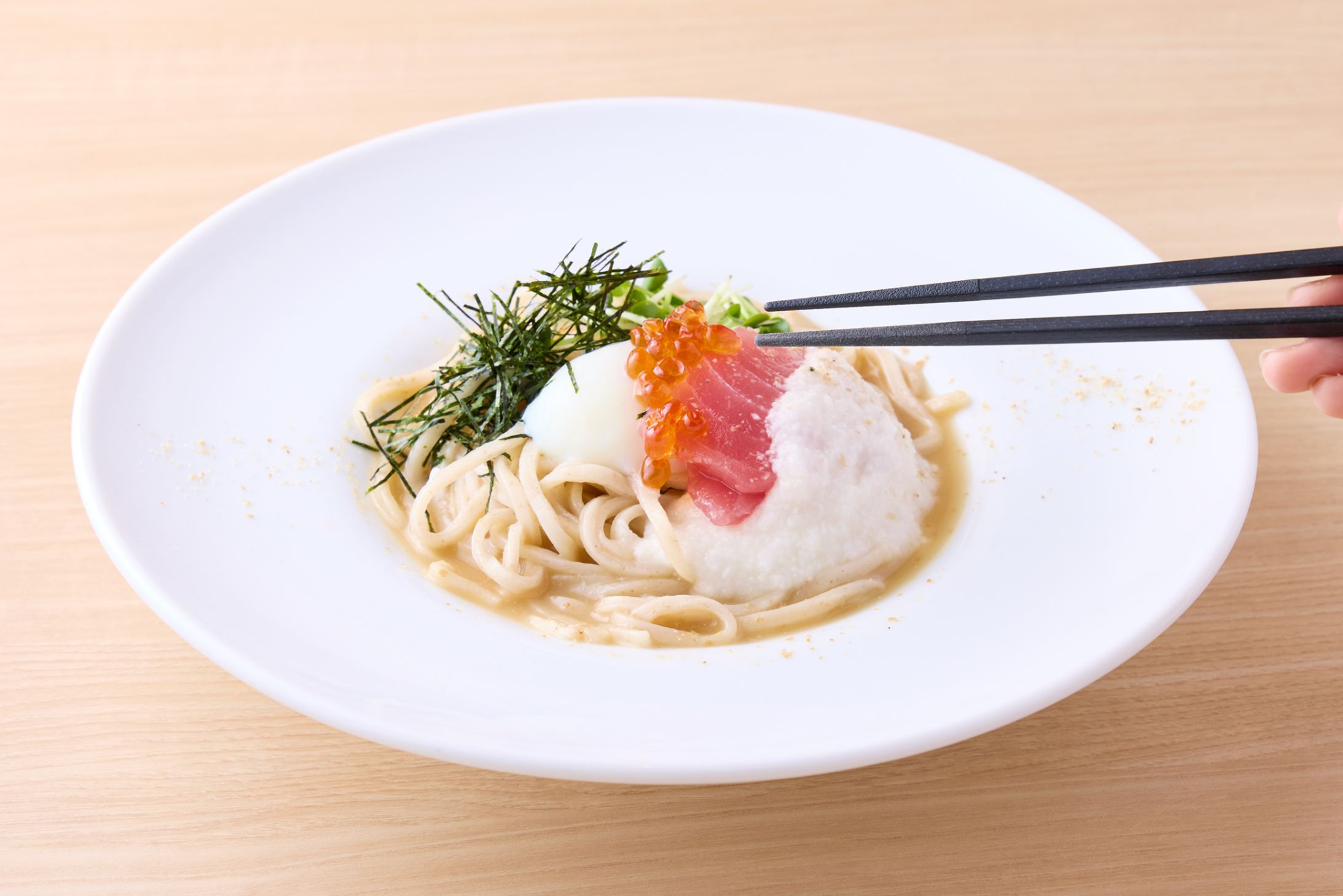 ■喉越しと弾力の両立:稲庭うどんのような「細身の喉越し」と、生パスタのような「もちもちとした弾力」を併せ持つ、独自のハイブリッド食感を実現しました。