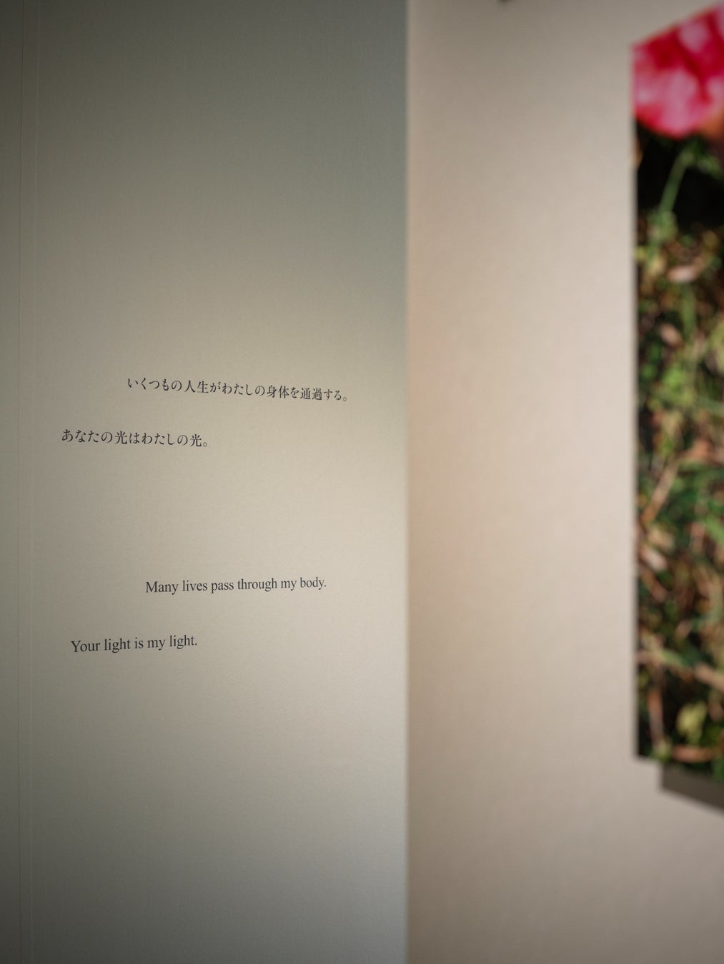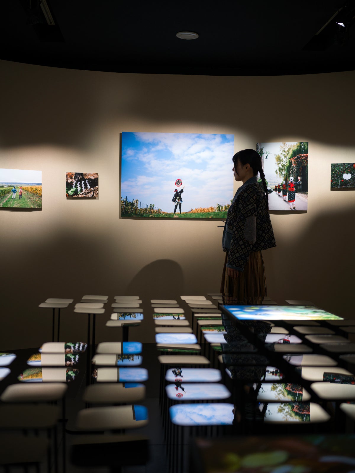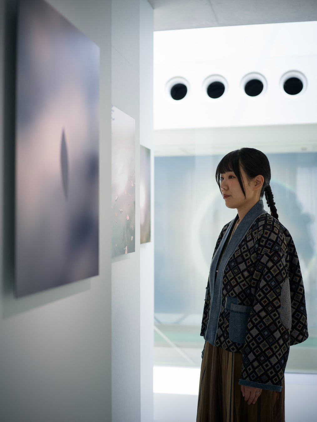 今回、セルフポートレイトという形で自分というフィルターを通じて人の一生を描きながら人生を通過させていく手法を取りました。ランスのルイナールメゾンを訪れた際に感じた土壌の豊かさや太陽の恵みは、そのまま私自身の故郷の人々を思い起こさせました。代々受け継がれてきた畑と共にある営みは日本もフランスも同じだと思ったのです。さらに人がこの世に生まれてから亡くなるまでの一生を円環構造と捉えたとき、人は平等に光になると捉えられるのではないかと考えました。光は日常に溢れていて、同じ太陽が私たちに日々の営みをもたらしている。地球上のどこにいても、私たちは同じ光を共有している。地球をめぐっている光。私たちも何か大いなるもの、円の中にあるもののひとつであるということを作品を通じて感じていただけたら嬉しいです。