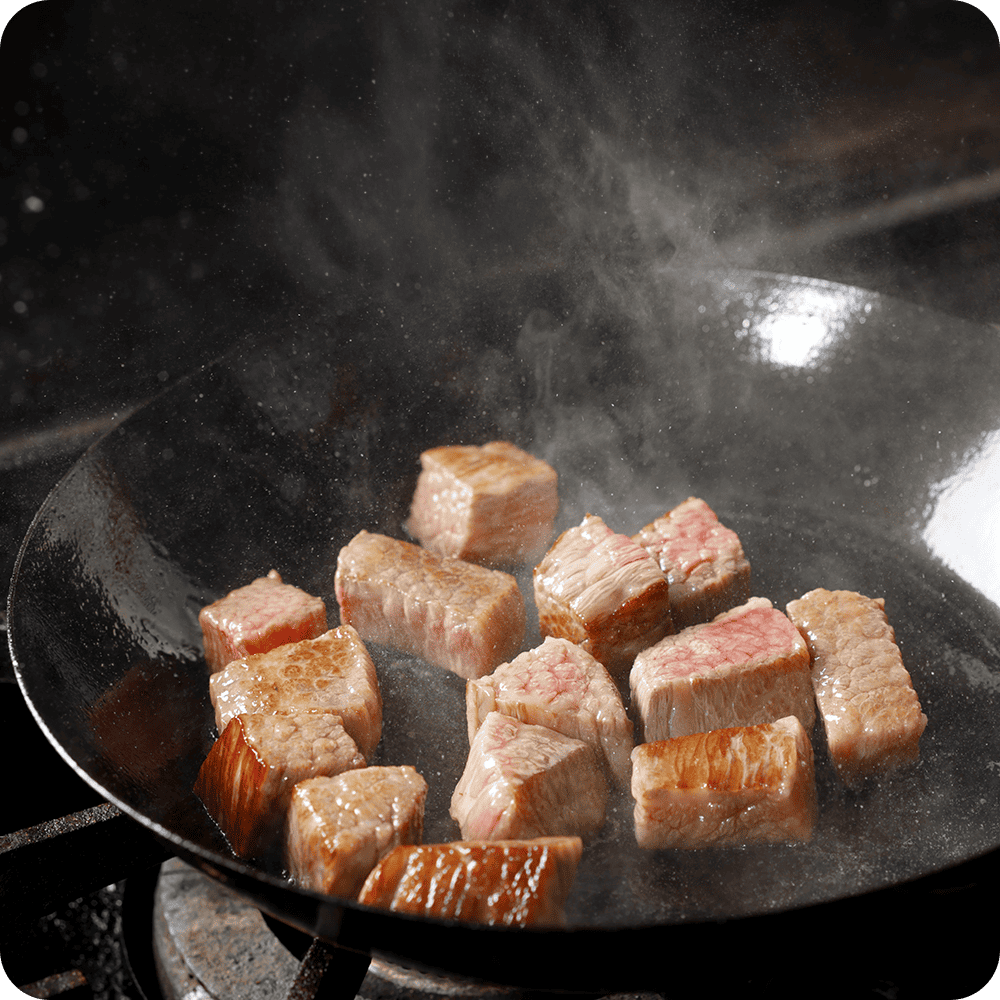厳選された近江牛と素材を使用し、仕込みから完成まで、近江肉師の手で一切の妥協なく手作業で調理しています。