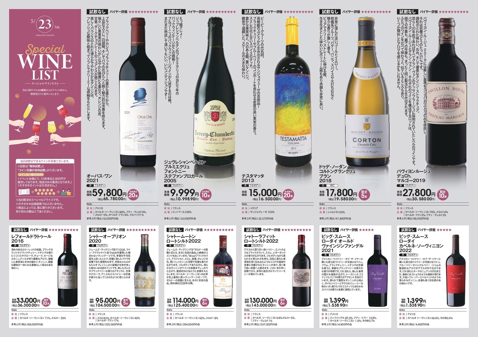 さらに、「オーパス・ワン」やボルドー格付けシャトーをはじめとする希少・高級ワインも数量限定で特別価格にて販売予定。ワインラヴァ―にとって見逃せないラインナップとなっています。