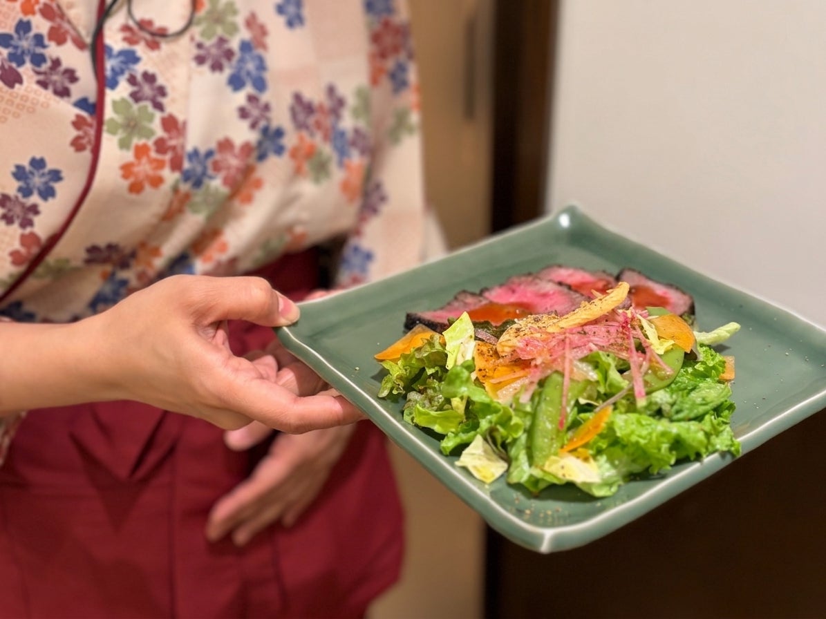 兵庫県三田市に本店を構え、能舞台のあるレストランとして知られる「三田屋本店ーやすらぎの郷ー」の大丸神戸レストラン店(神戸市中央区)は、毎月29日の「肉の日」限定で、ディナーコースのサラダを「ローストビーフサラダ」へ無料でアップグレードする特別企画を実施いたします。