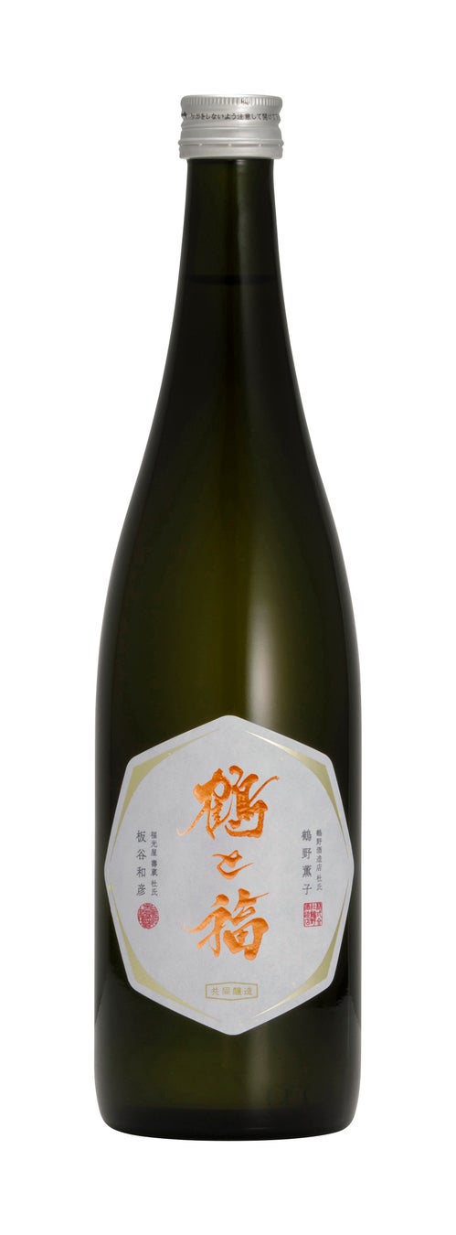 「鶴と福」は両蔵の名頭を取り命名。今年も吉祥八角のラベルに両杜氏名と落款を共に配しました。品格のある黒色のボトルが力強く艶やかなオレンジ色の書を引き立てます。