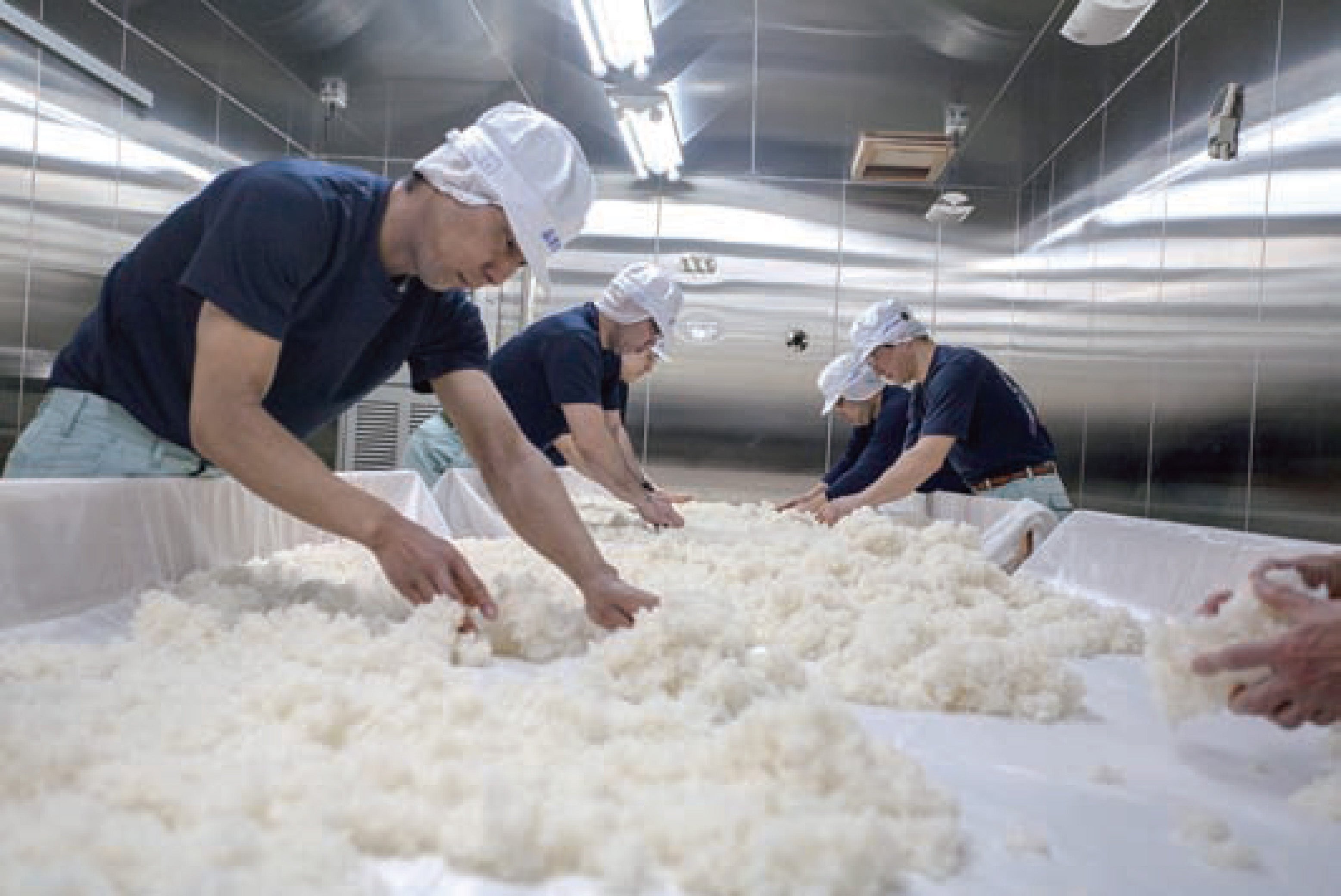 三和酒類は1958年に地元の酒蔵3社※が合併し、共同で瓶詰めを行える清酒蔵置場を設置して統一銘柄『和香牡丹』を世に送り出したのが始まりです。現在の本社がある宇佐市郊外の丘陵地にあった古代寺院「虚空蔵寺(こくぞうじ)」の名をとった虚空乃蔵は、高品質少量生産を基本とし、八幡社の総本宮・宇佐神宮の御神酒も醸造しています。地元で愛される食用米「ヒノヒカリ」を中心に、人の感性や手仕事を基本とした手造り蔵として「丹念に一念に」酒造りをおこなっています。