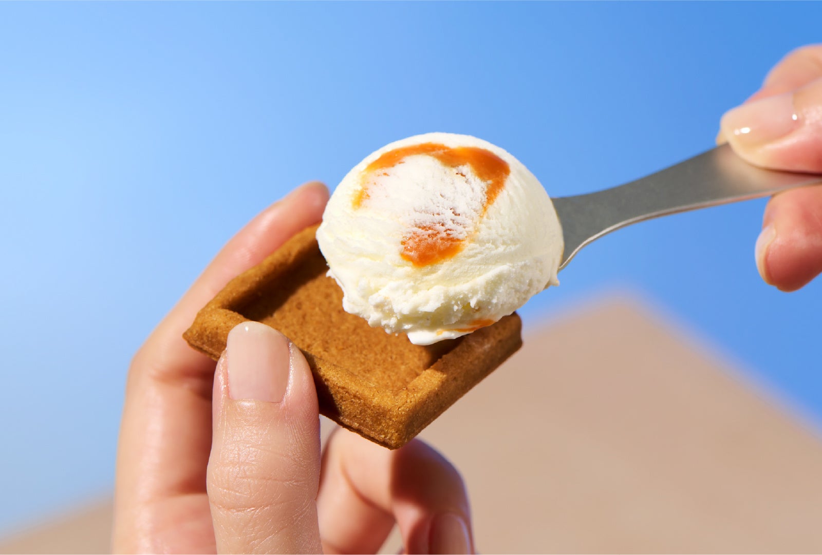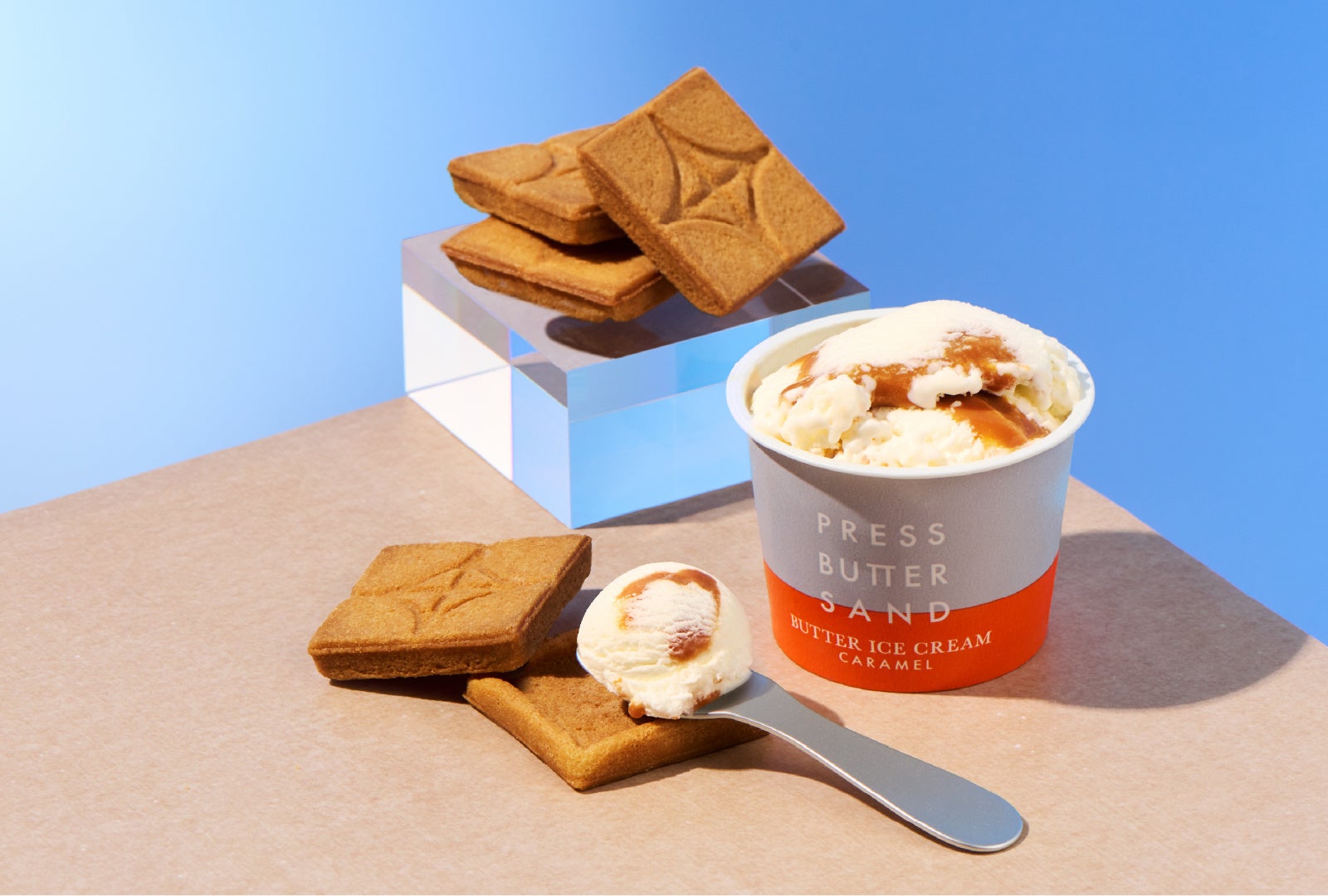さらに、人気の「バターアイスクリーム〈キャラメル〉・クッキーセット」も、夏の期間限定商品として登場。コク深く濃厚なバターアイスにキャラメルをたっぷり練り込んだ「バターアイスクリーム〈キャラメル〉」と、サクサクの「プレスバタークッキー」を組み合わせたセットです。アイスクッキーサンドのようにお楽しみいただくことはもちろん、クッキーを崩してアイスと混ぜるなど、様々なアレンジをお楽しみいただけます。