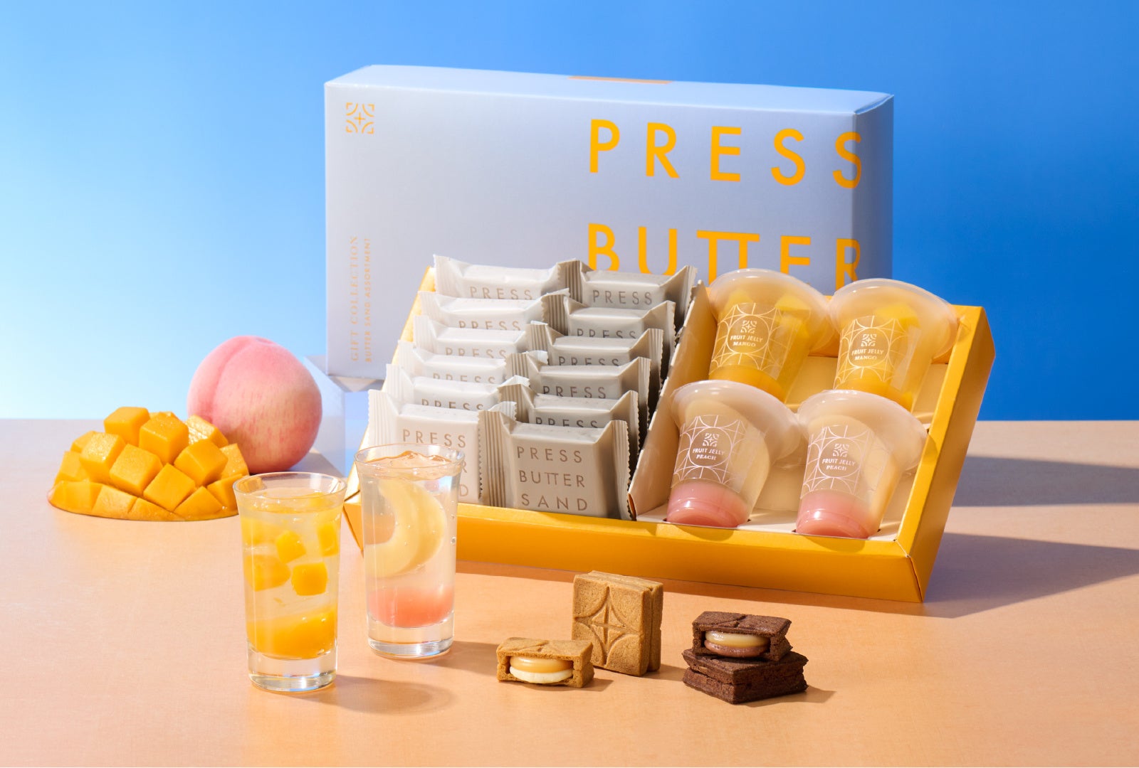 PRESS BUTTER SANDでは、今年も夏のお中元やギフトにぴったりの商品を取り揃えました。人気フレーバーの「あまおう苺」や、夏にぴったりの爽やかな「檸檬」など、個包装のバターサンドを詰め合わせたセットに加え、暑い時期にもさっぱりとお楽しみいただけるフルーツジュレなど多様なラインナップをご用意いたしました。